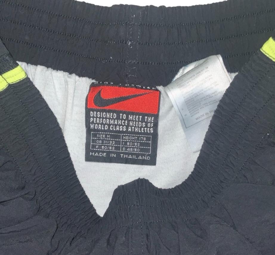 There are vintage soccer shorts, made from a lightweight, breathable fabric cotton blend which is very typical of the 1990s. They feature an elasticated waistband with internal drawstrings, side pockets and internal soft fabric lining for breathability.