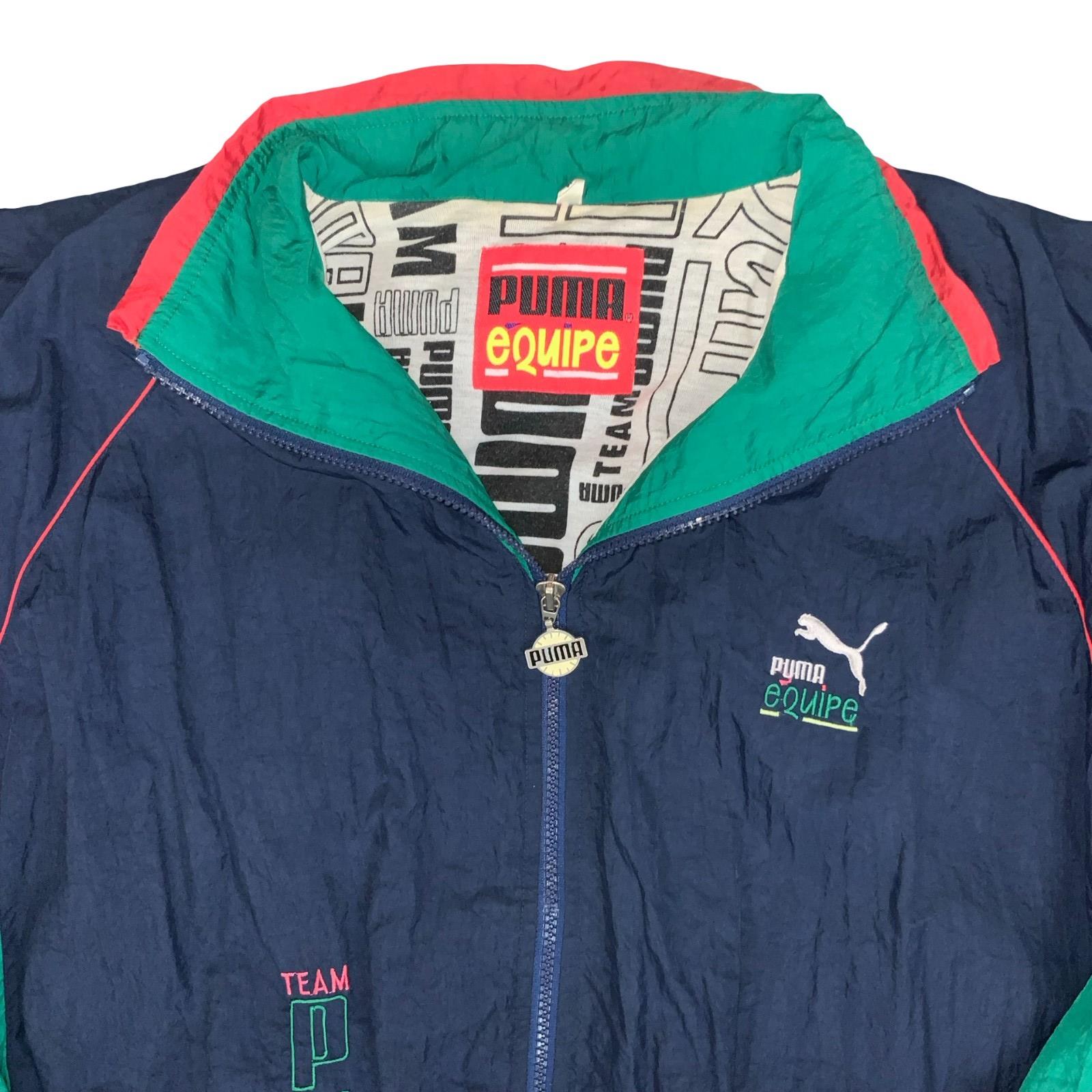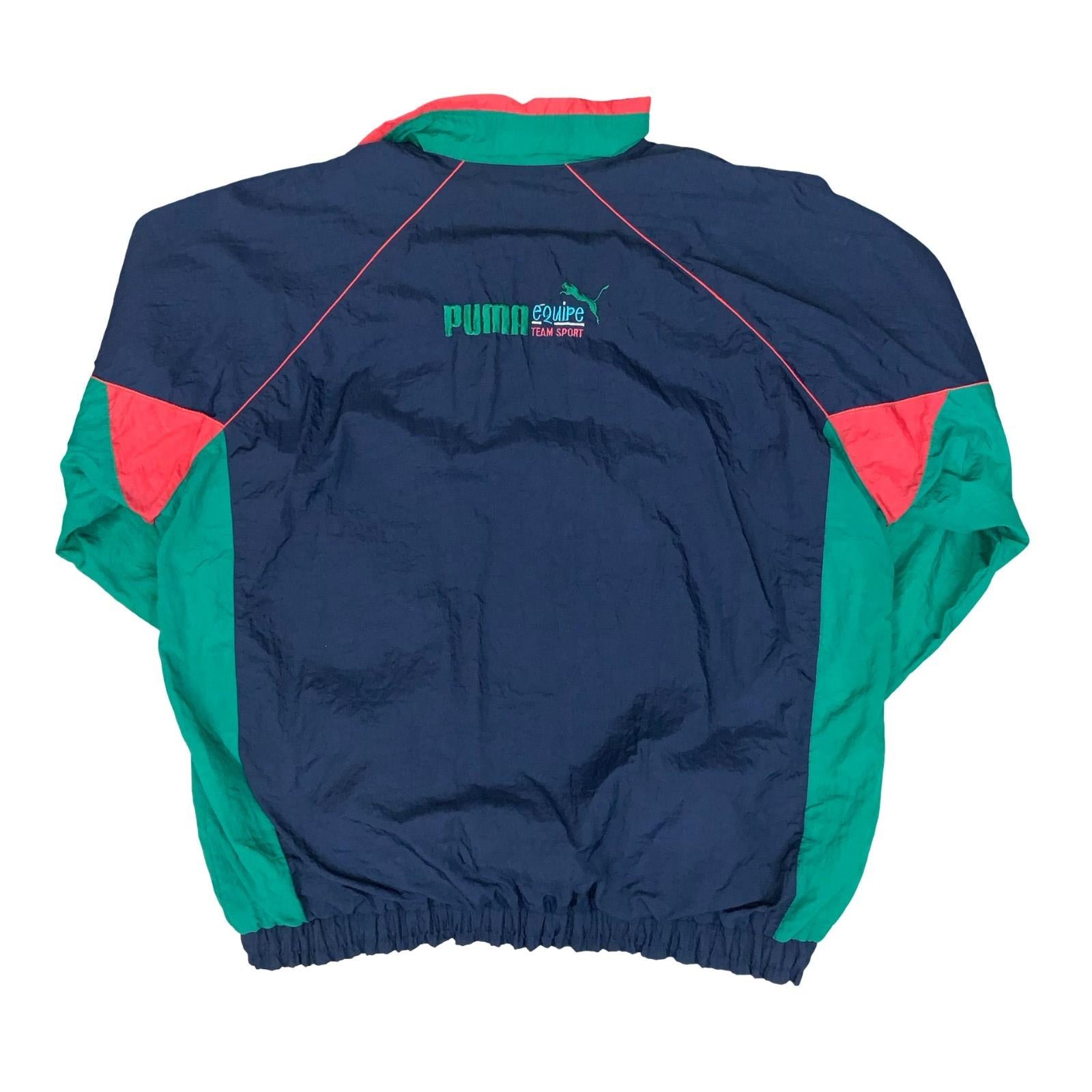 VTG 90s 'PUMA EQUIPE' BLUE GREEN RED COLOUR-BLOCK GRAPHIC LINED WINDBREAKER 2XL