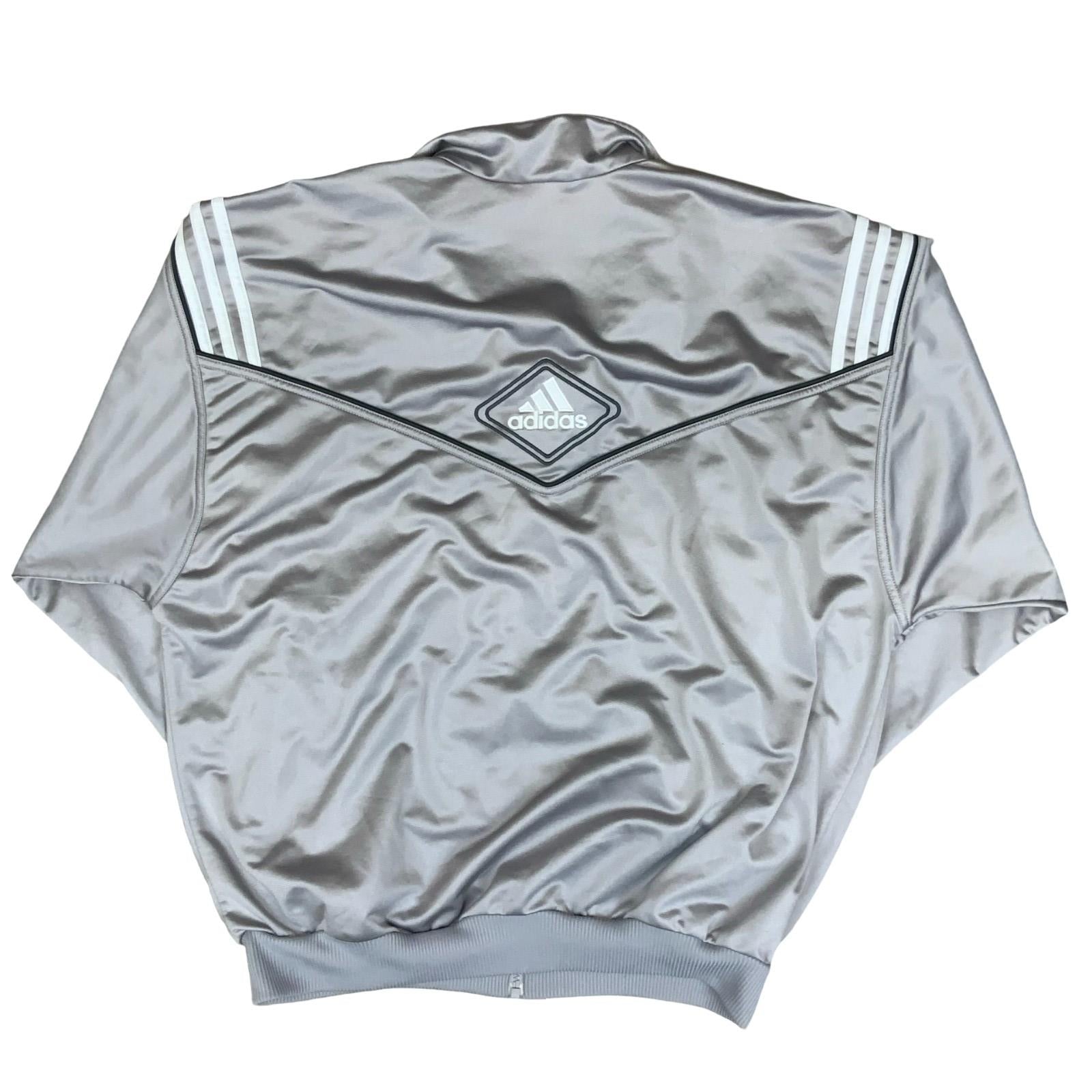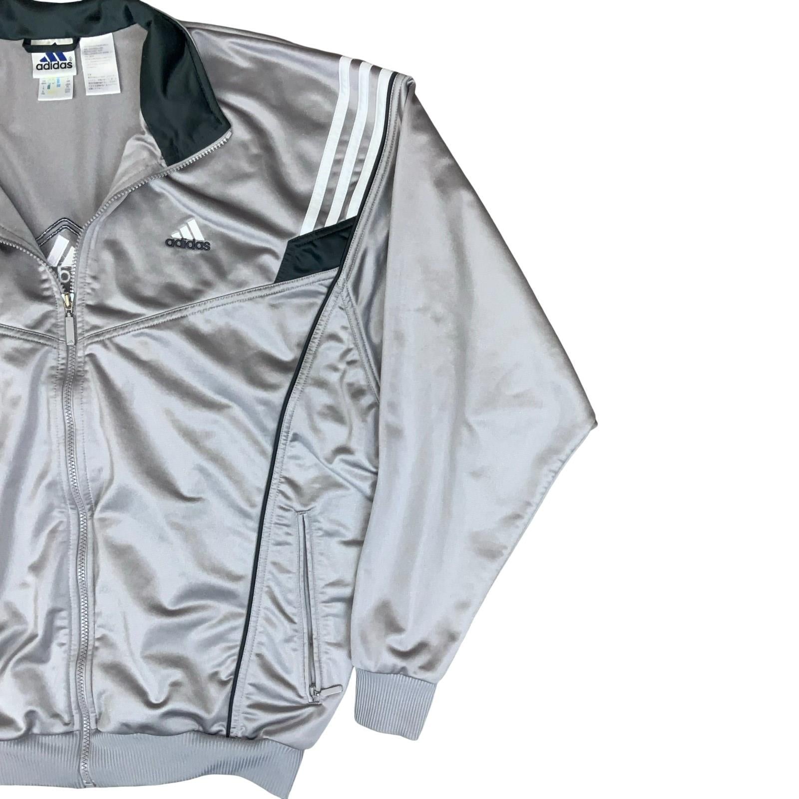 VTG 90s RETRO 'ADIDAS' SILVER GREY CASUAL FULL ZIP WARM-UP TRACK JACKET LARGE