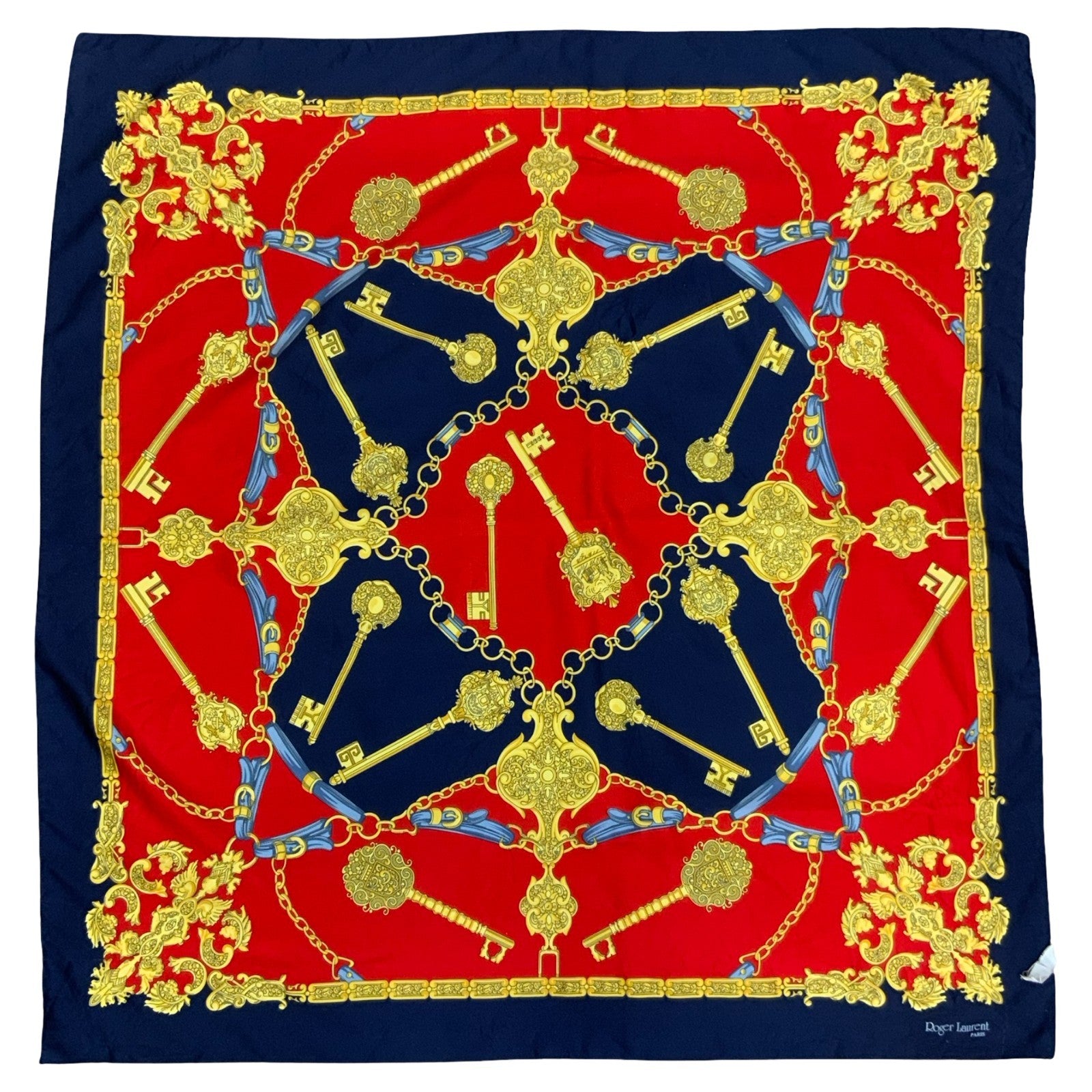 VTG 90s 'ROGER LAURENT' PARIS RED BLUE GOLD KEY CHAINS ROYAL DESIGN SQUARE SCARF