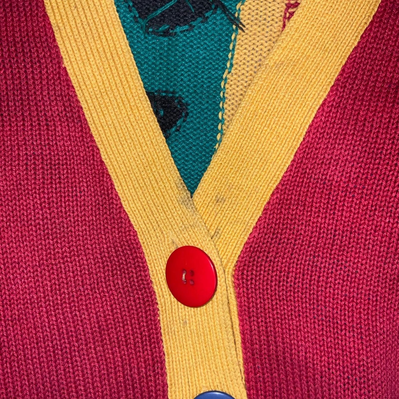Vtg 90s 'Stefano' Red Multi-Coloured Patterned Novelty Oversized Cardigan 2XL