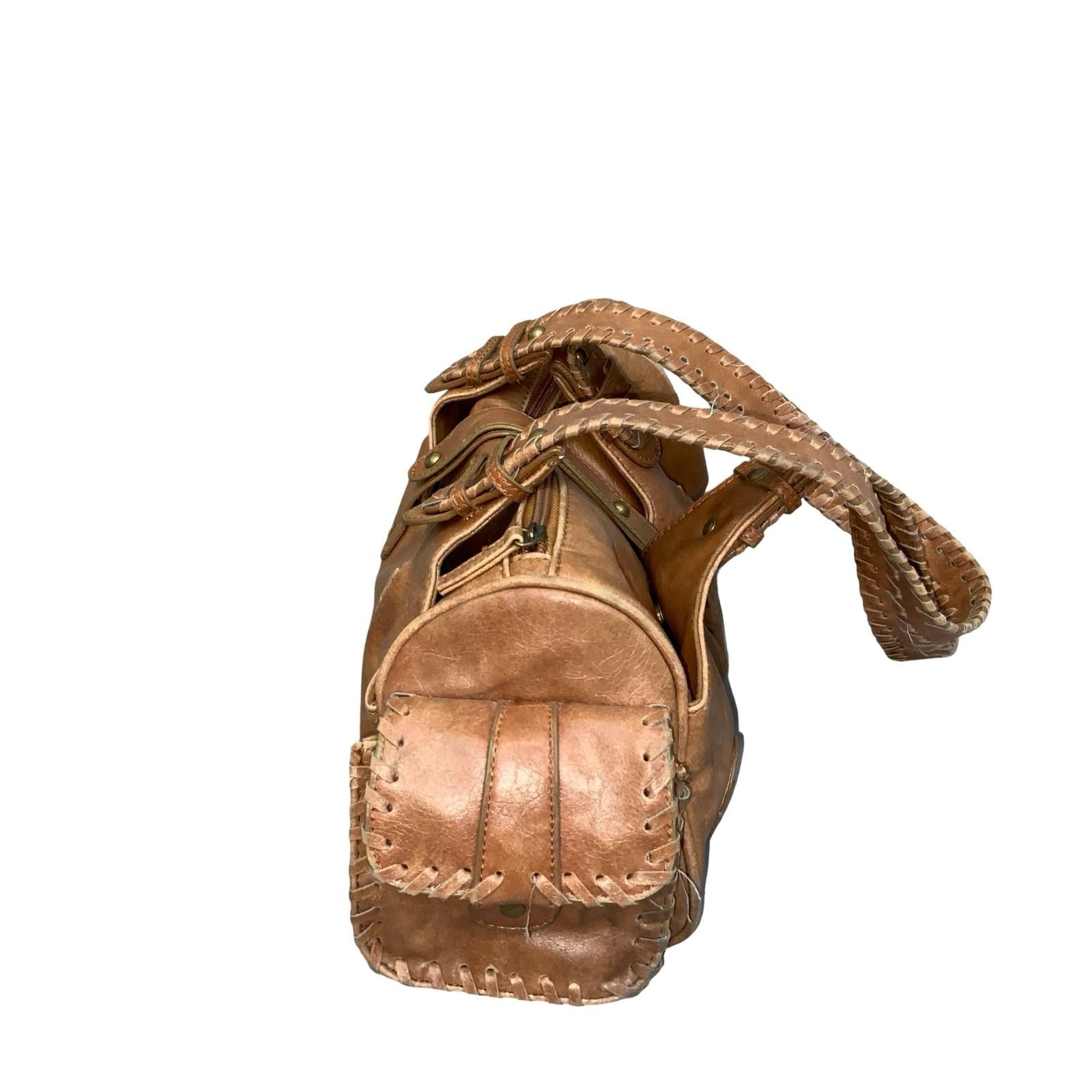 Vtg 90s y2k Brown Leather Hobo-Style Boho Exposed Stitch Shoulder Hand Bag