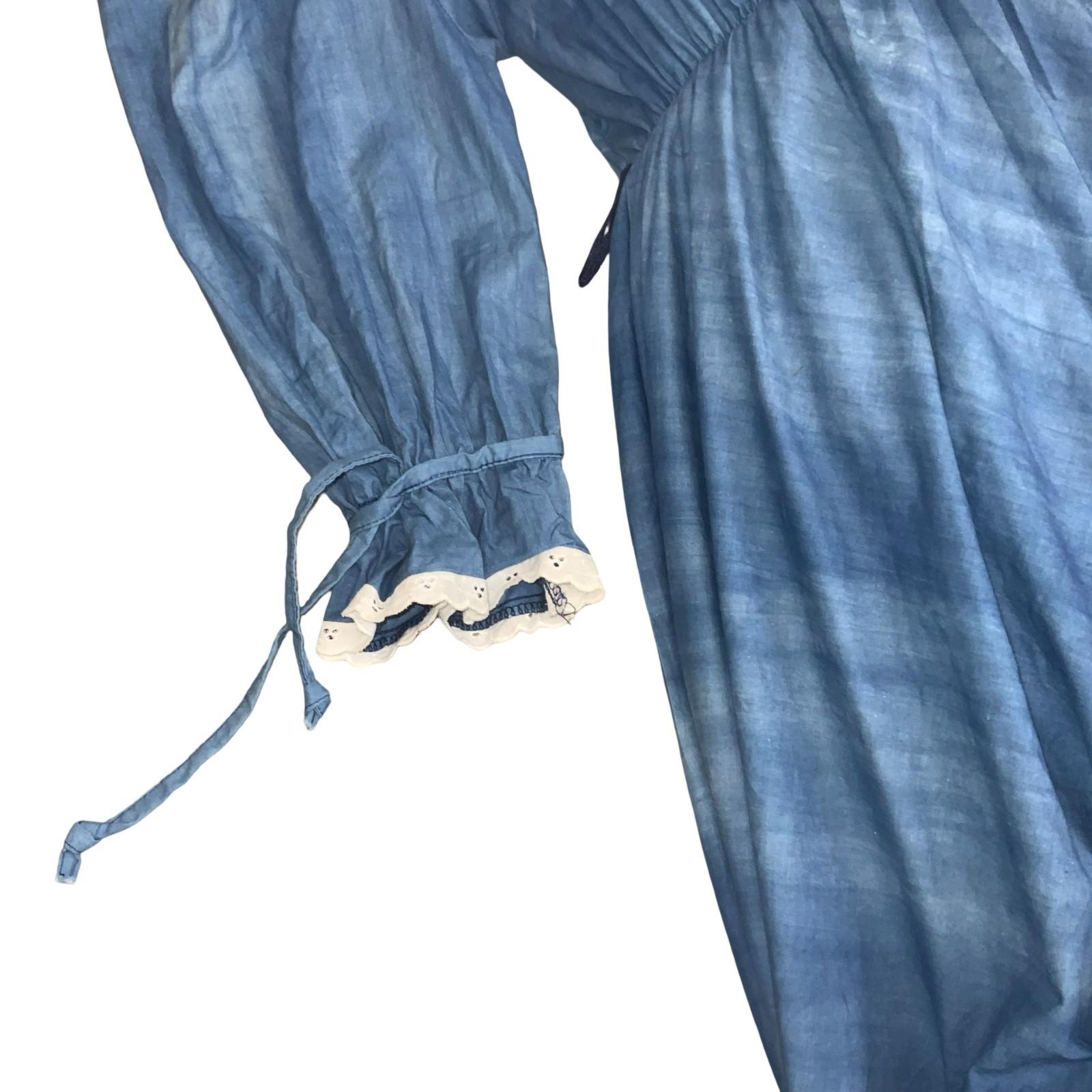 Vtg 90s 'Yessica' Blue A-Line Prairie White Frill Victorian Cottage Dress UK 10