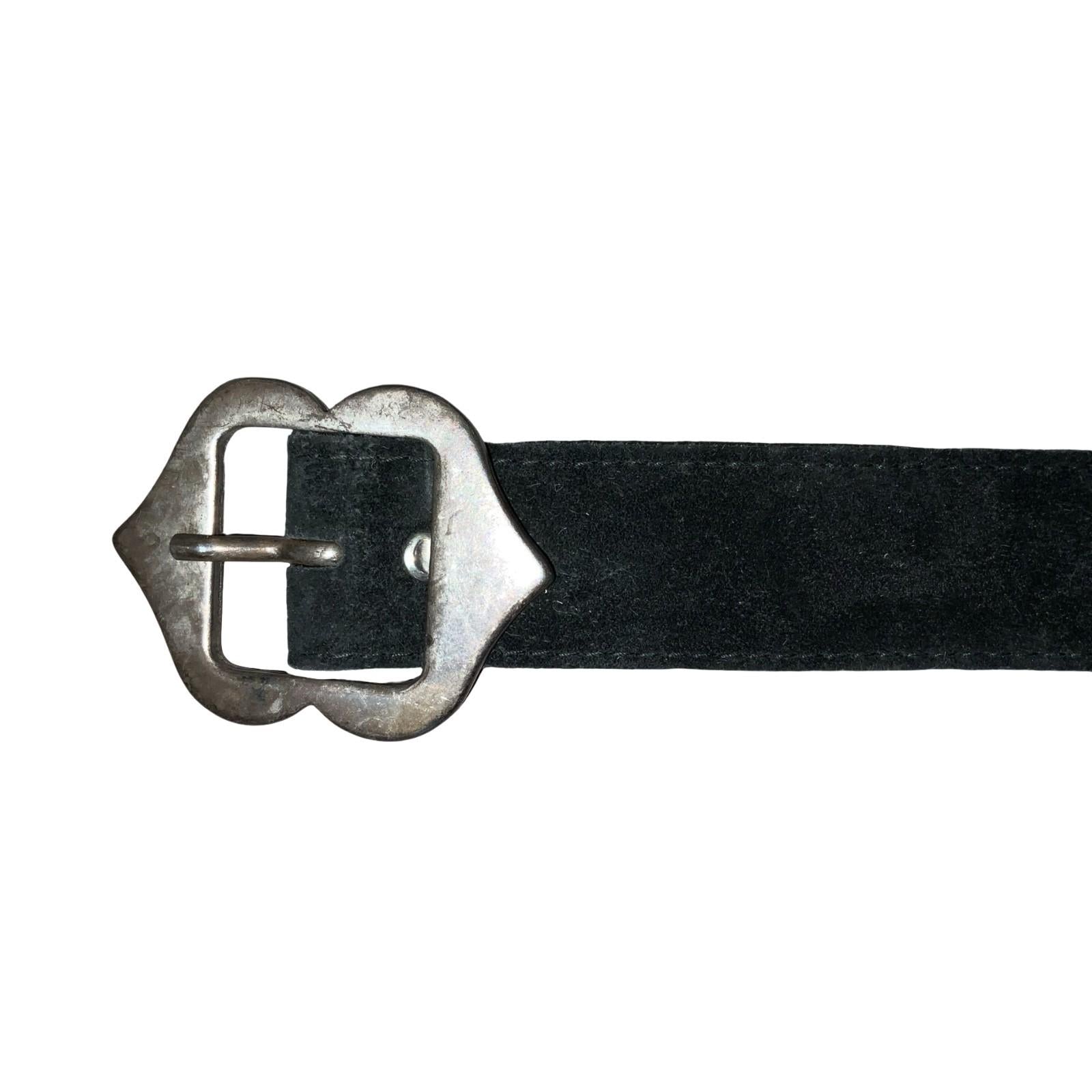 Vtg Black Bavarian Dirndl Folk Silver Heart Stud Buckle Suede Belt UK 14/16