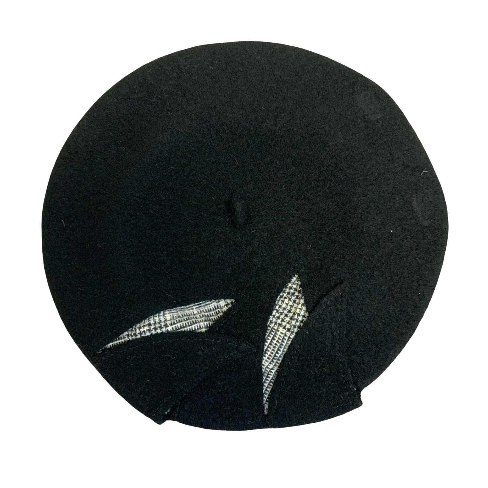 Vtg 'Christine Kauffmann' Black Tartan Patchwork Pure New Wool Beret Size Medium