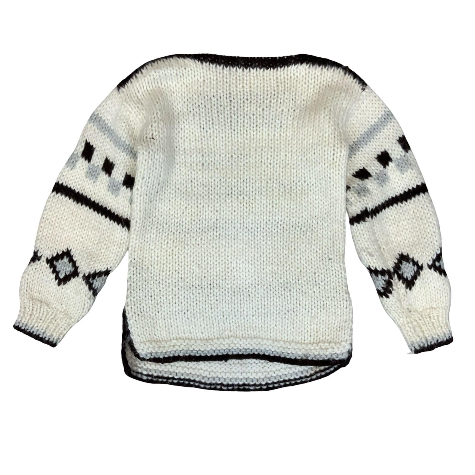 Vtg Chunky Handknit White Black Geometric Pattern Boat Neck Pullover Sweater S