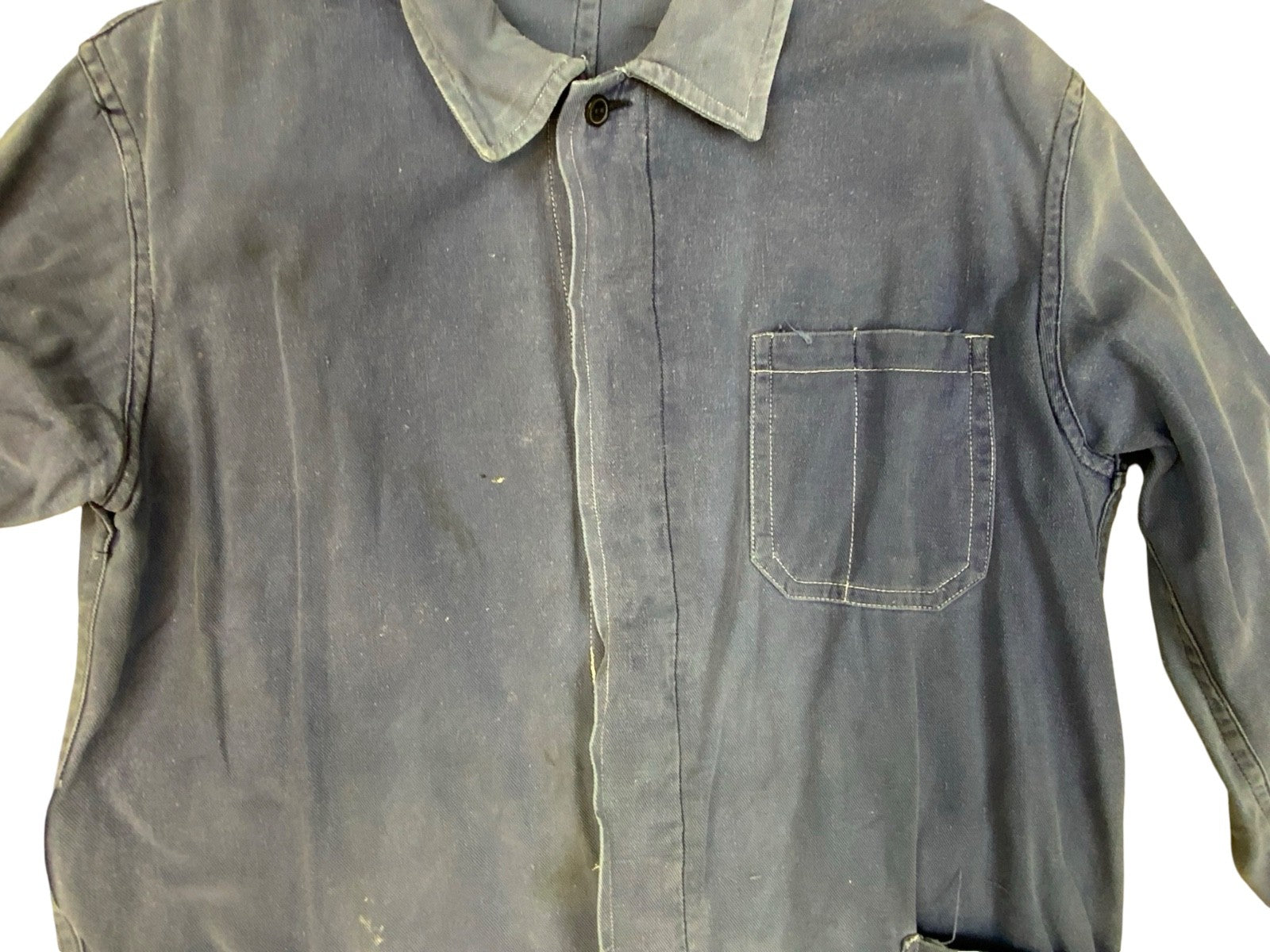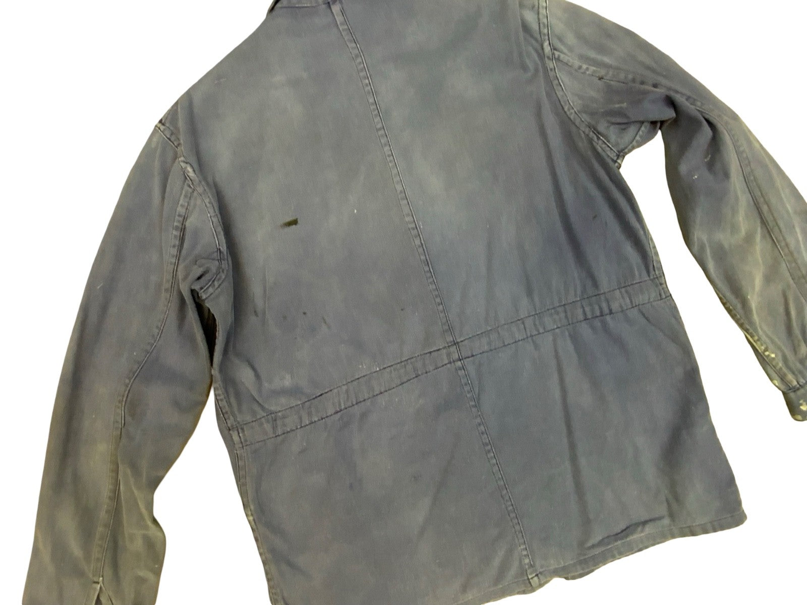 VTG DISTRESSED & FADED EU FRENCH WORKWEAR CHORE JACKET INDIGO TWILL COTTON M