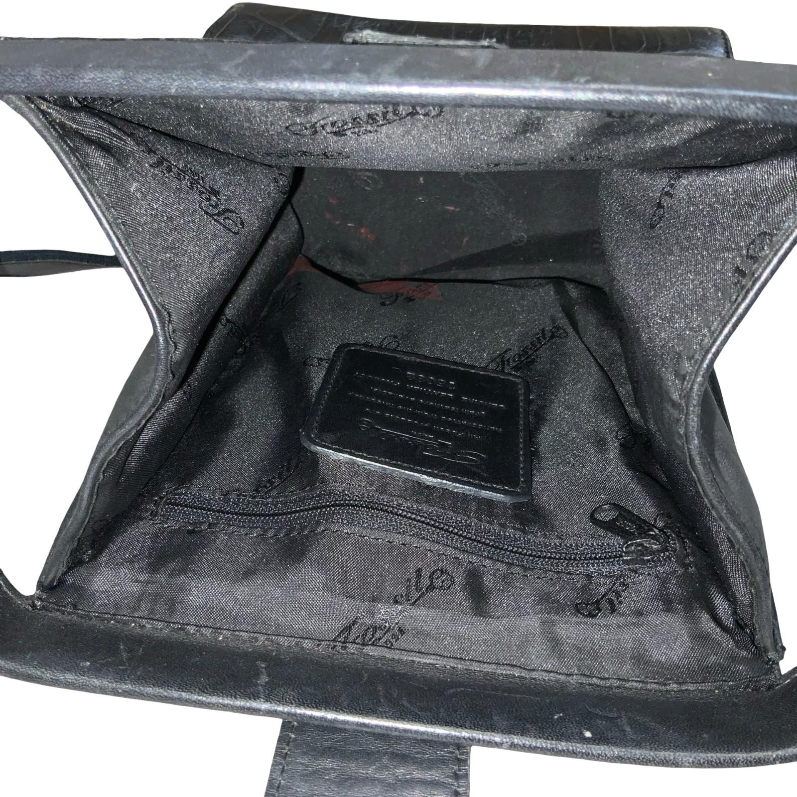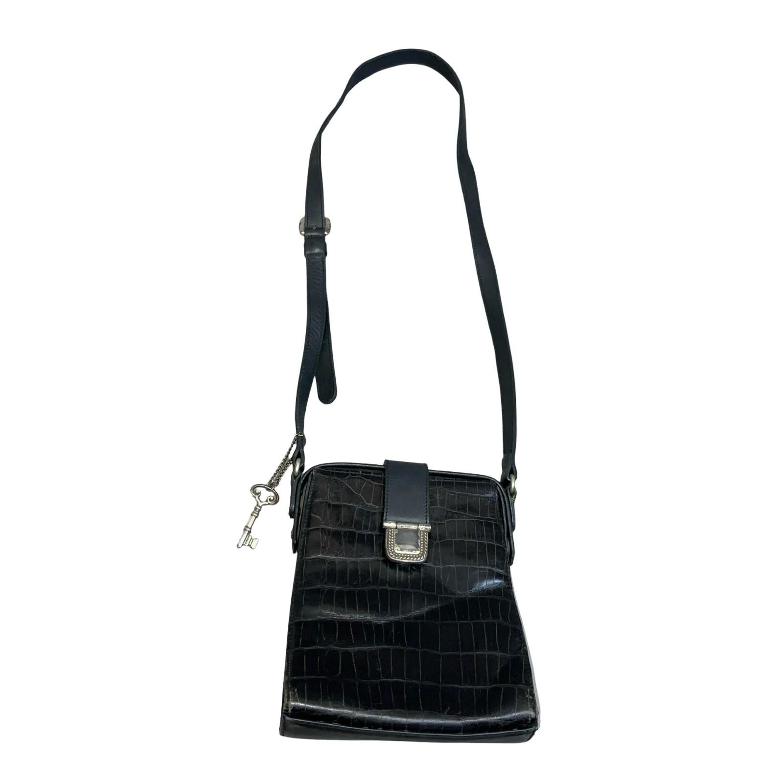 Vtg 'Fossil' Black Genuine Leather Croc Embossed Adjustable Shoulder Handbag
