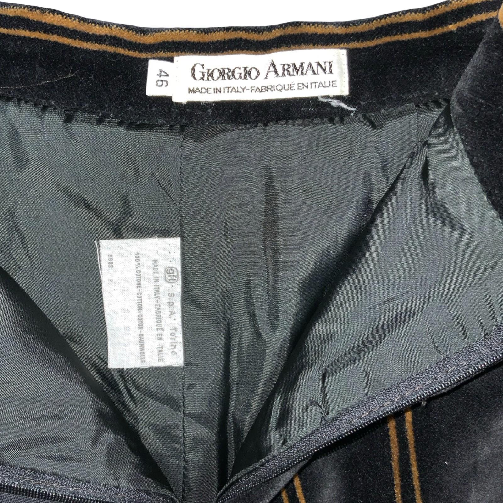 Vtg 'Giorgio Armani' Black Gold Striped Cotton Velvet Pleated Midi Skirt UK 10