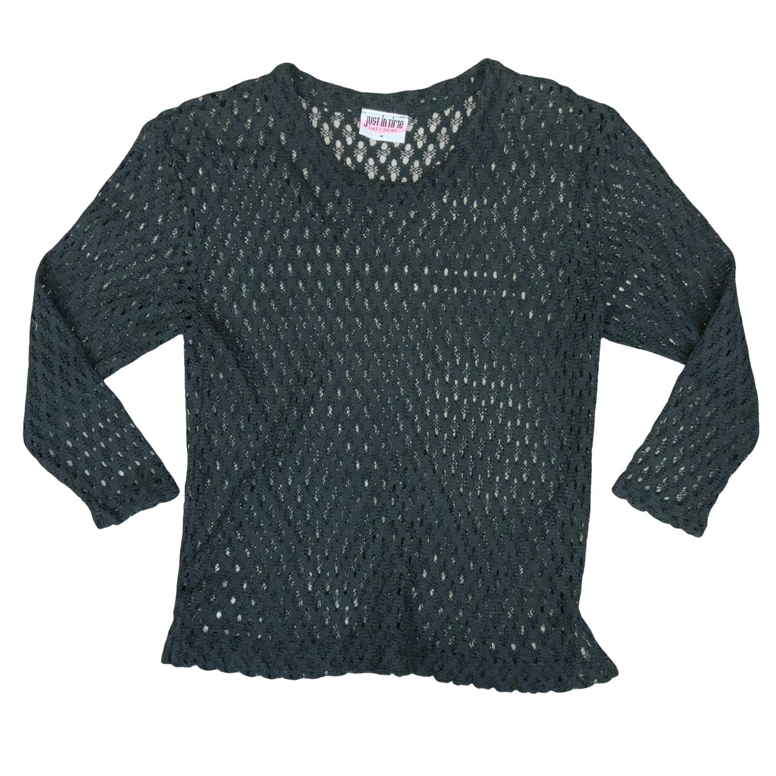 Vtg Just in Time Black Crochet Ladies Grunge Punk Hippy Knit Jumper Top M UK 12