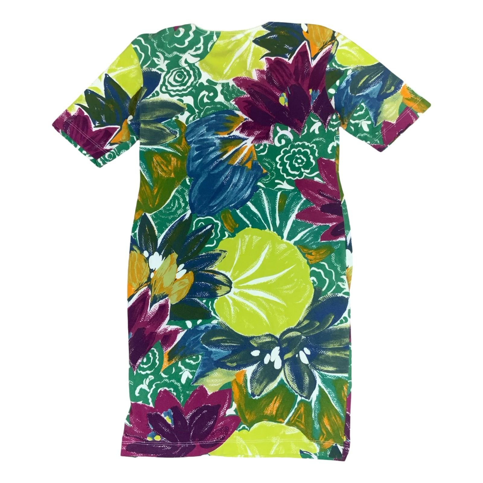 Vtg 'Les Copains' Green Purple Colourful Floral Mini Figure-Hugging Dress UK 10