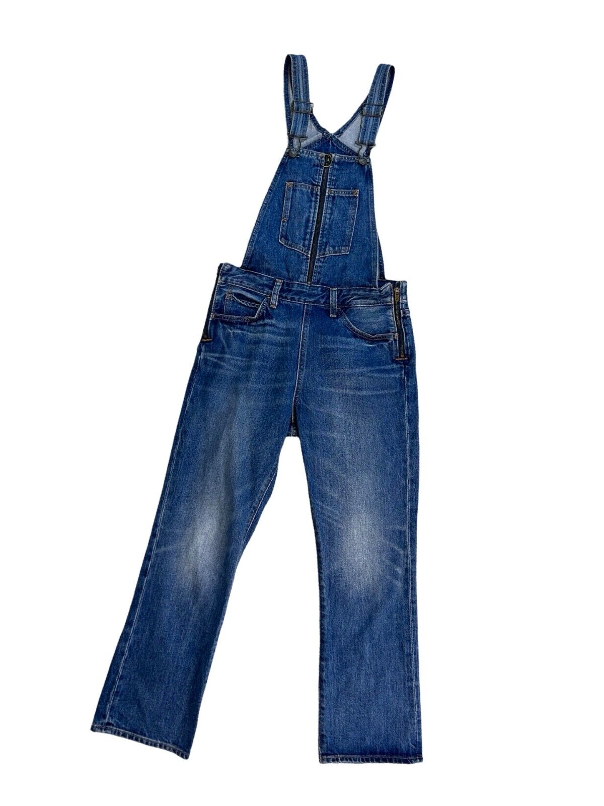 Here we have a superb vintage pair OF orange tab Levis slim fit dungarees, these fit like a pair of women's jeans with the added bonus of the dungaree bib, it has front bib zip and side zips on both hips.