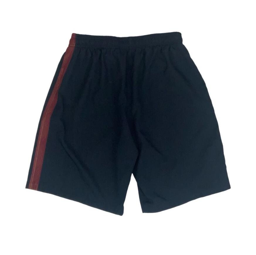 Here we have a pair of vintage y2k Nike shorts known as "Nike Man City 2016-2017 Away Shorts". They are black in colour featuring a maroon stripe down each side, the Manchester City club crest on the right leg and the number 19 printed in white on the left with a yellow Nike swoosh underneath.