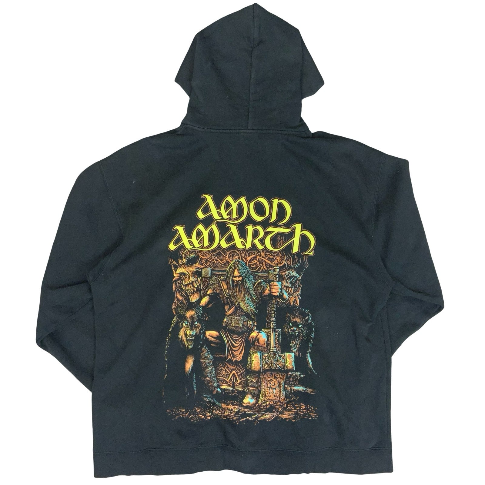 Vintage RARE Fruit of the Loom zip-up hoodie with a graphic Amon Amarth design. Featuring side pockets, a hood without drawstrings and long sleeves. Oversized and comfortable fit, made from 70% cotton and 30% polyester.
