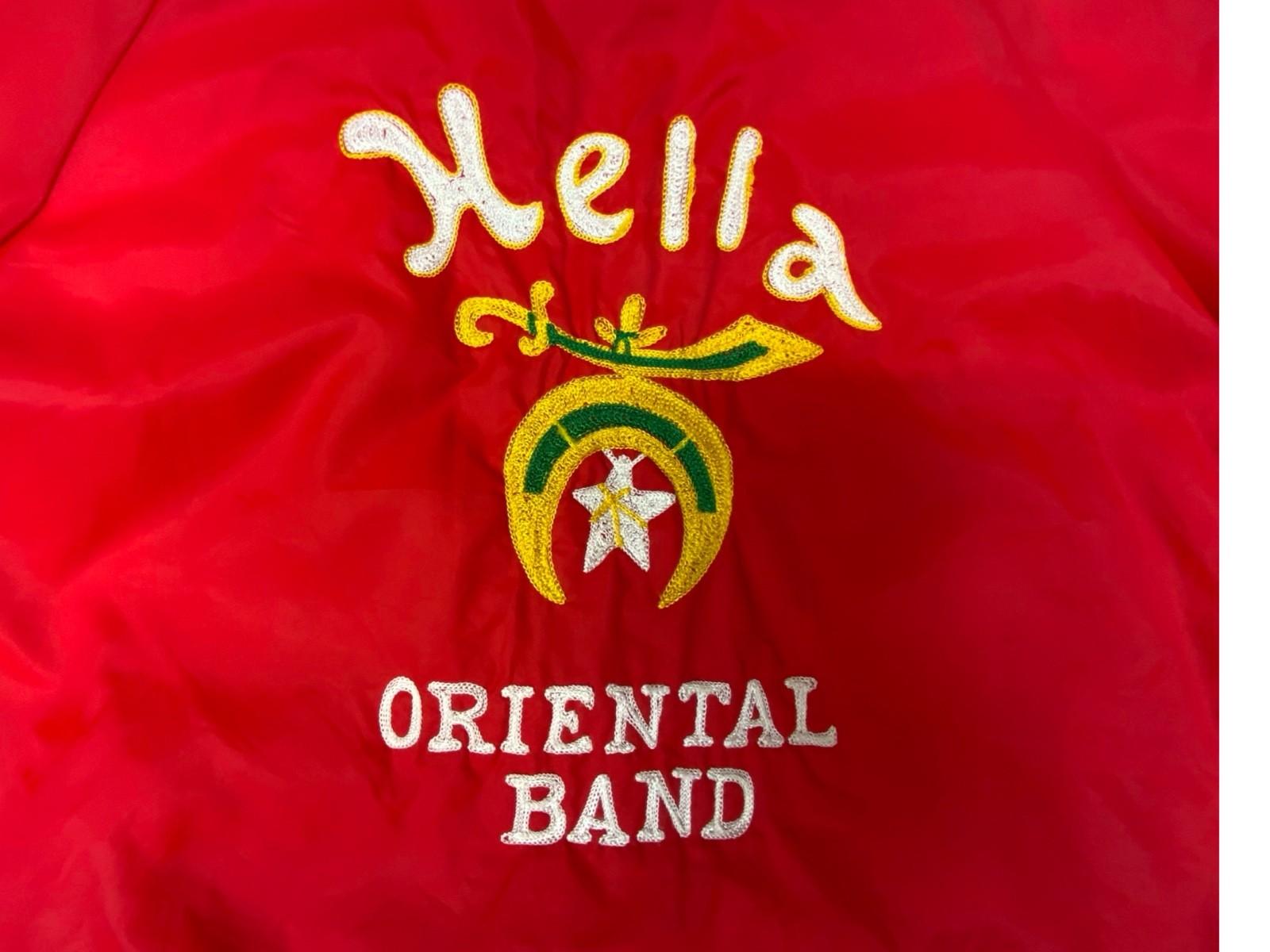 Vtg USA 70s Red Shrine Club Shriner Chain Stitch Nylon Bomber Jacket XL