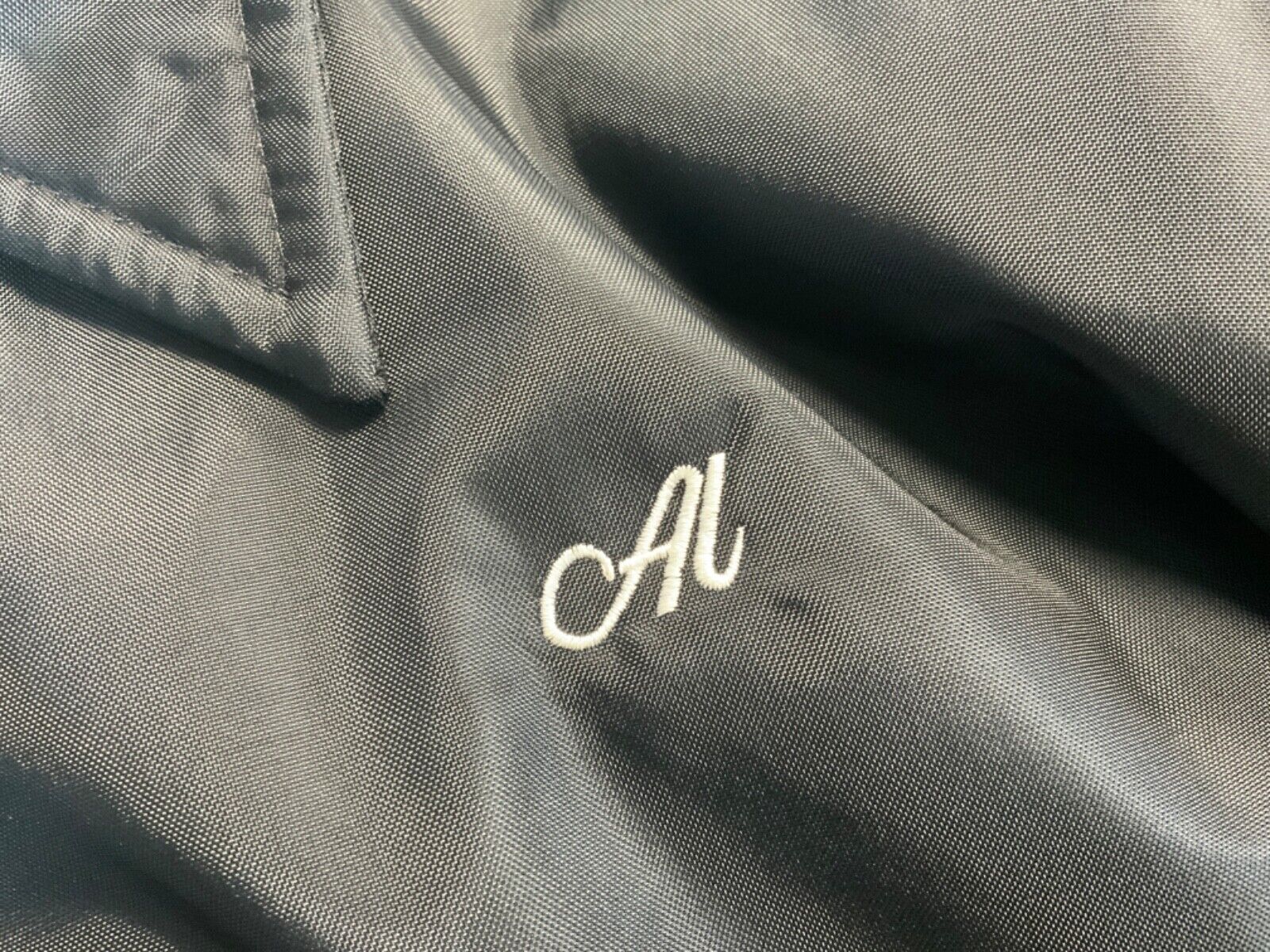 Here we have a USA made Sherpa lined nylon bomber jacket with the screen printed logo on the back of the tri village (New York) military colour guard memorial