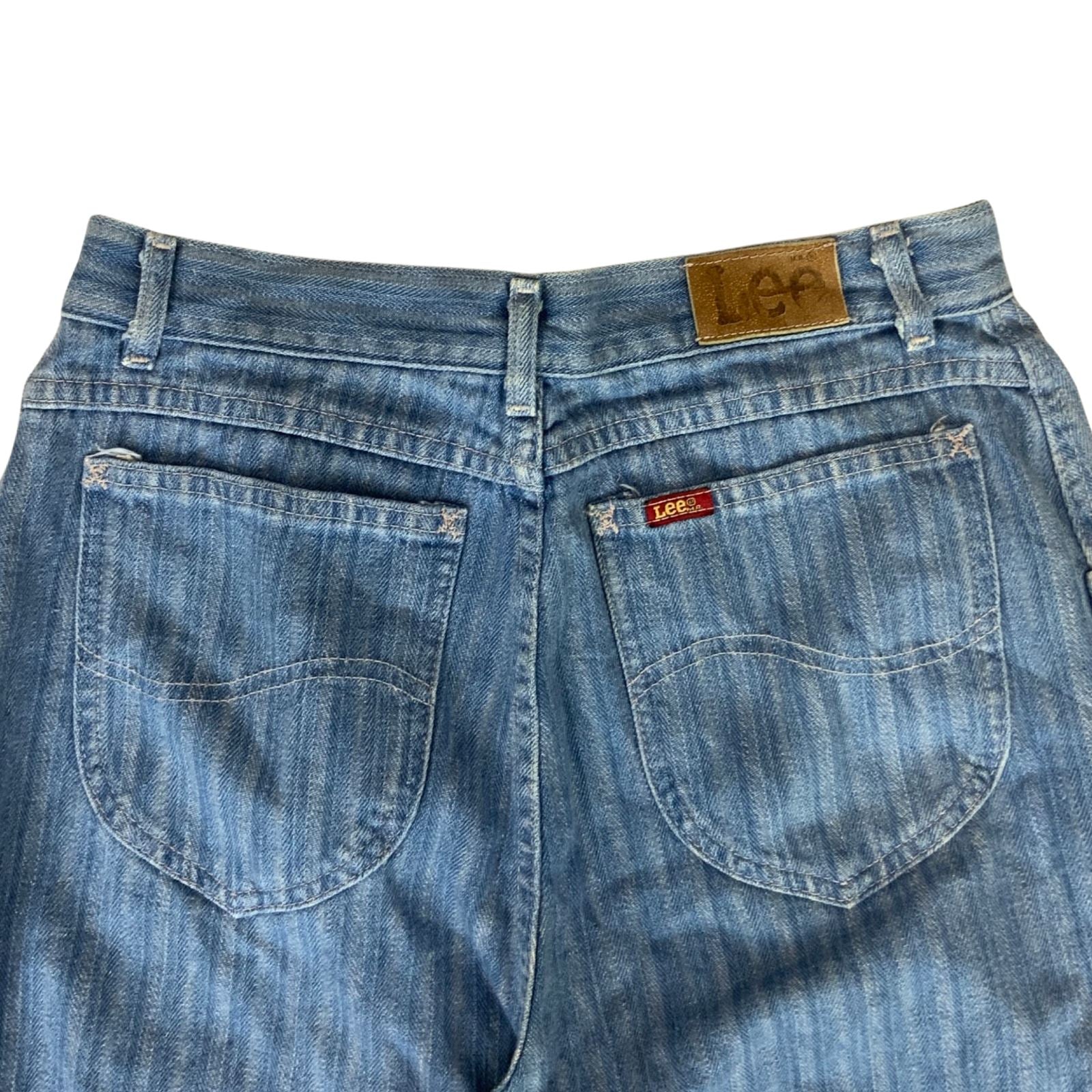 VTG USA UNION MADE LEE HERRINGBONE STRIPE DENIM HIGH WAIST JEANS WORKWEAR 28W 31