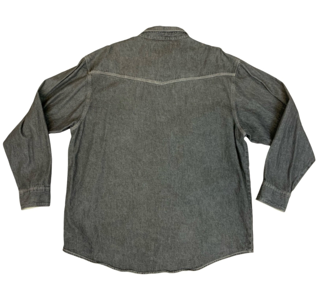 Vtg Wrangler Black Denim Pearl Snap Western Shirt Chimayo Native Embroidered XL