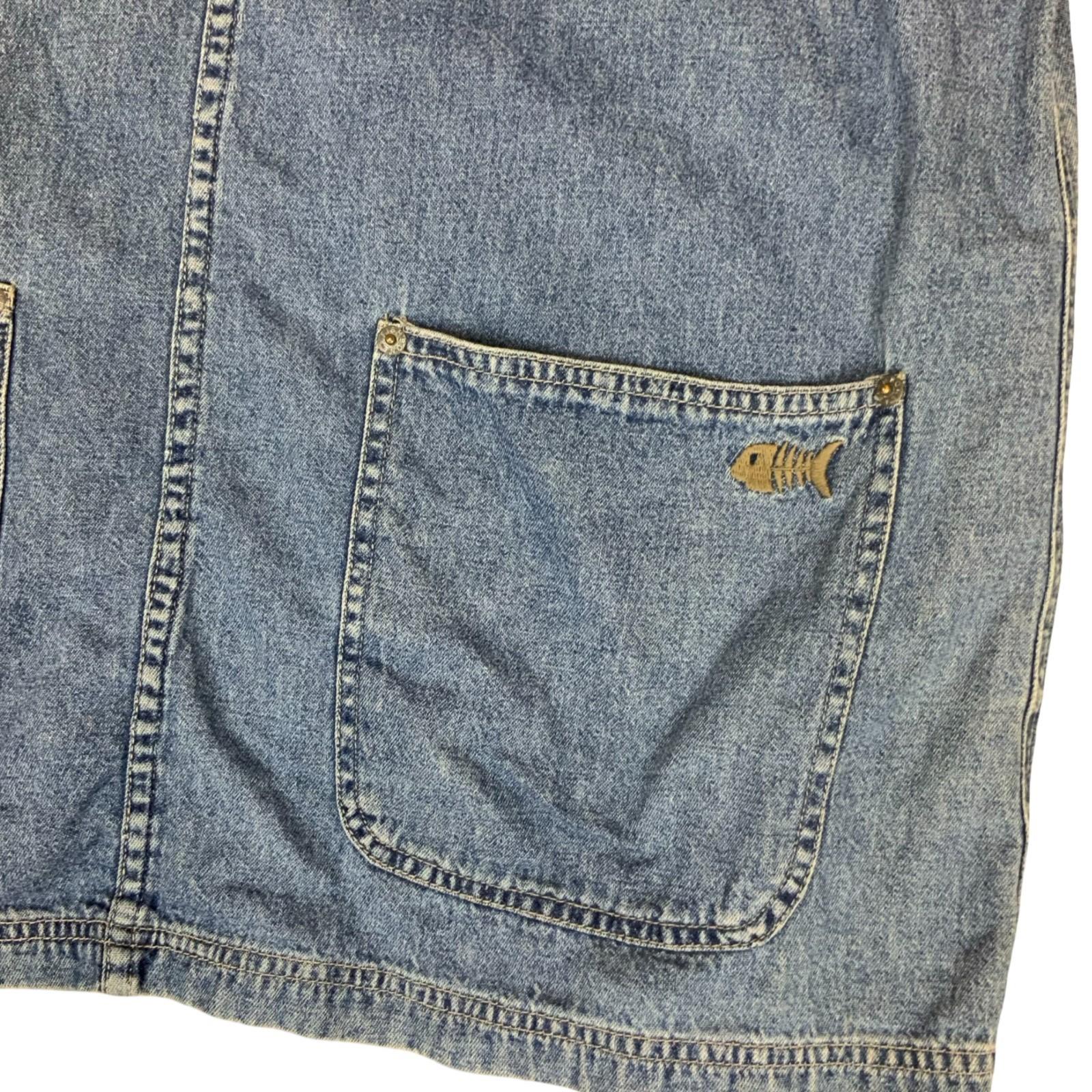 Vtg Y2K 'Fishbone' Blue Denim Relaxed Dungarees-Style Pinafore Mini Dress UK10