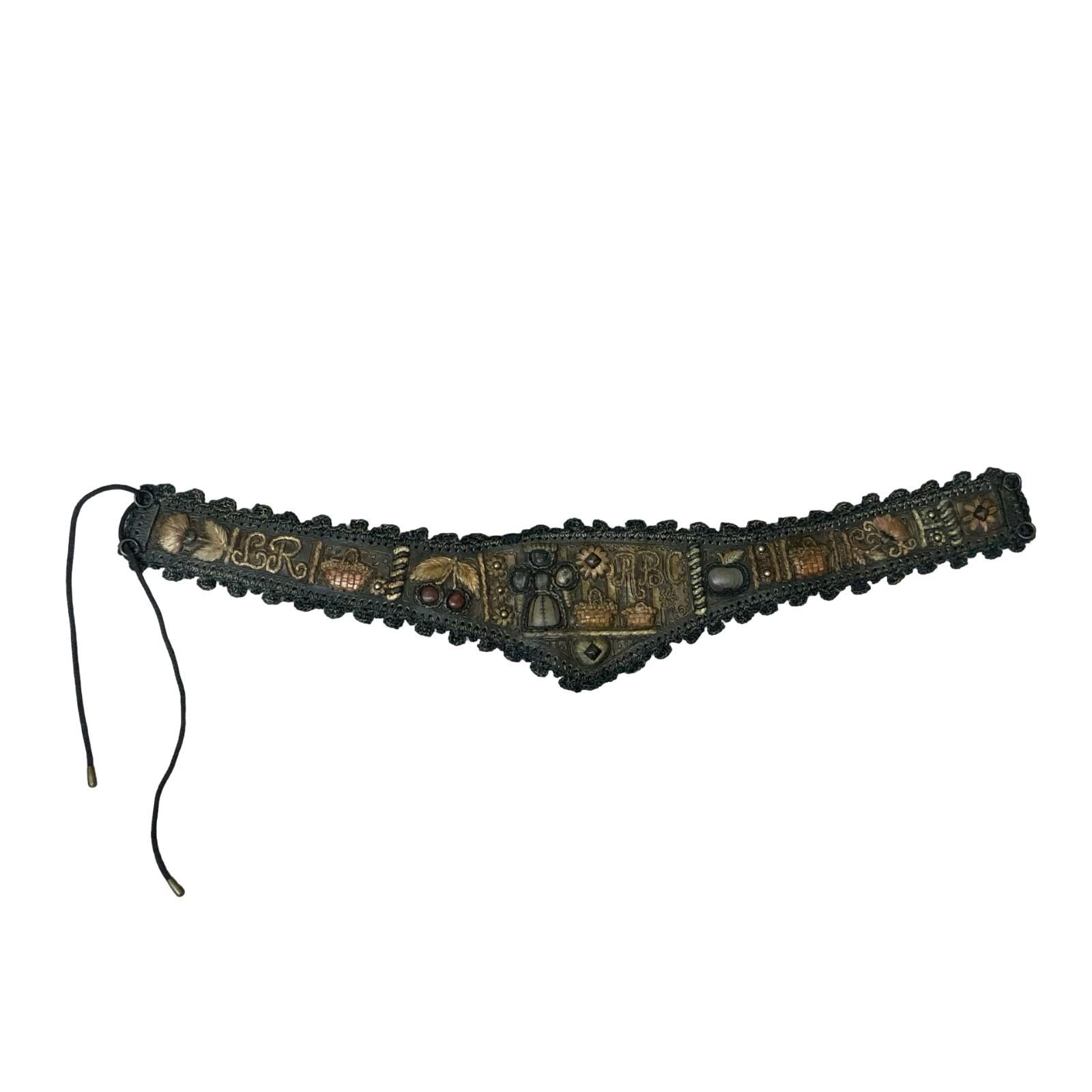 Vintage finely crafted traditional Bavarian leather waist belt with a tie-style fastening and textured details throughout.