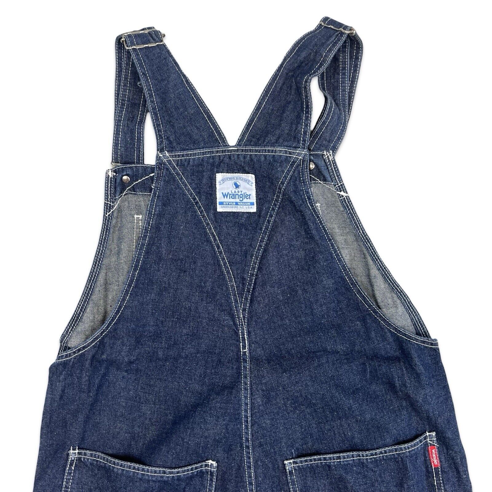 Here we have a superb vintage pair of ladies specific “lady Wrangler” bluebell dungarees, these are in excellent condition, they are a really dark indigo colour and are in excellent condition, a couple of minor scuffs but look fantastic!