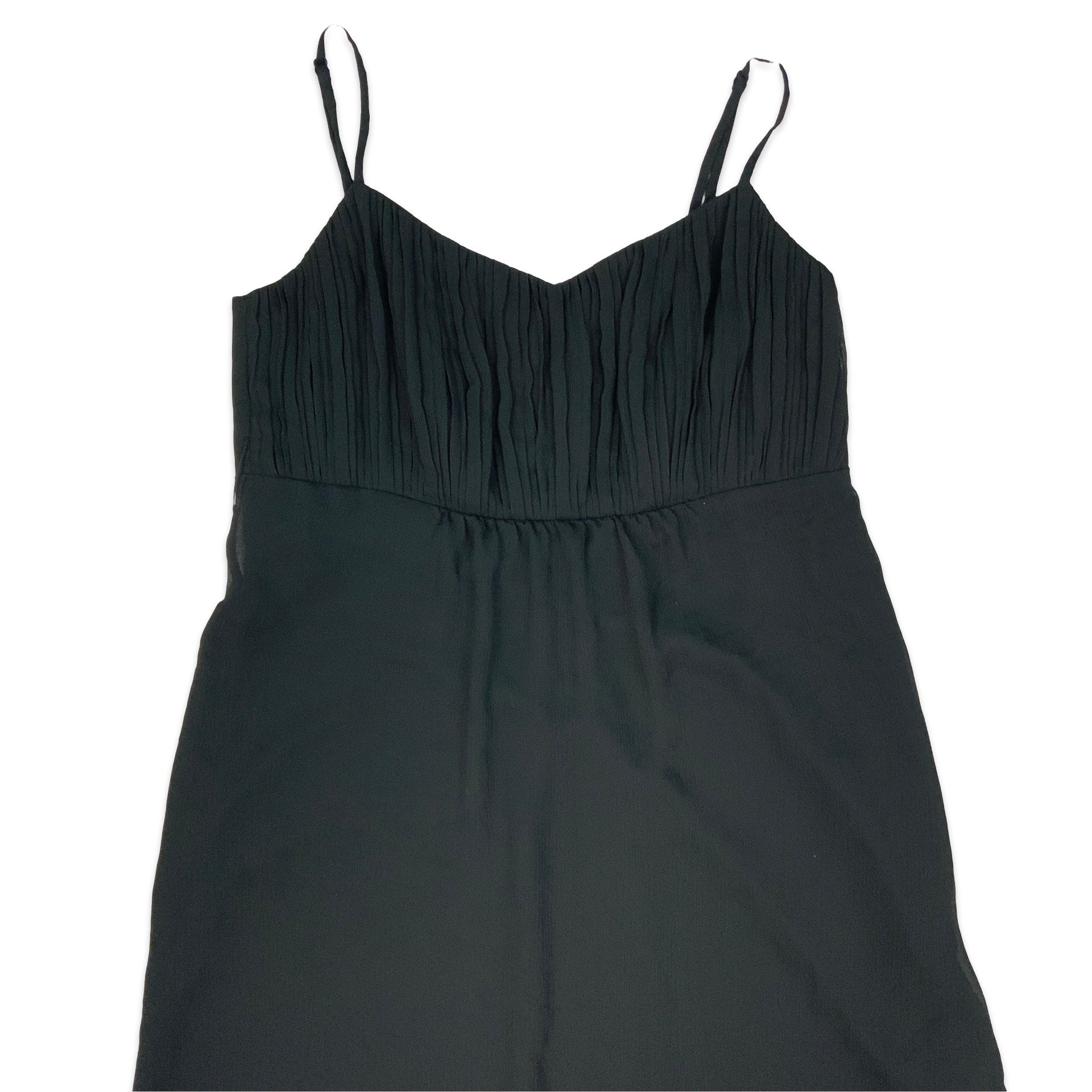 Women’s Y2K Esprit black midi dress. Pleated mesh fabric with lining. Adjustable straps and side zip fastening.