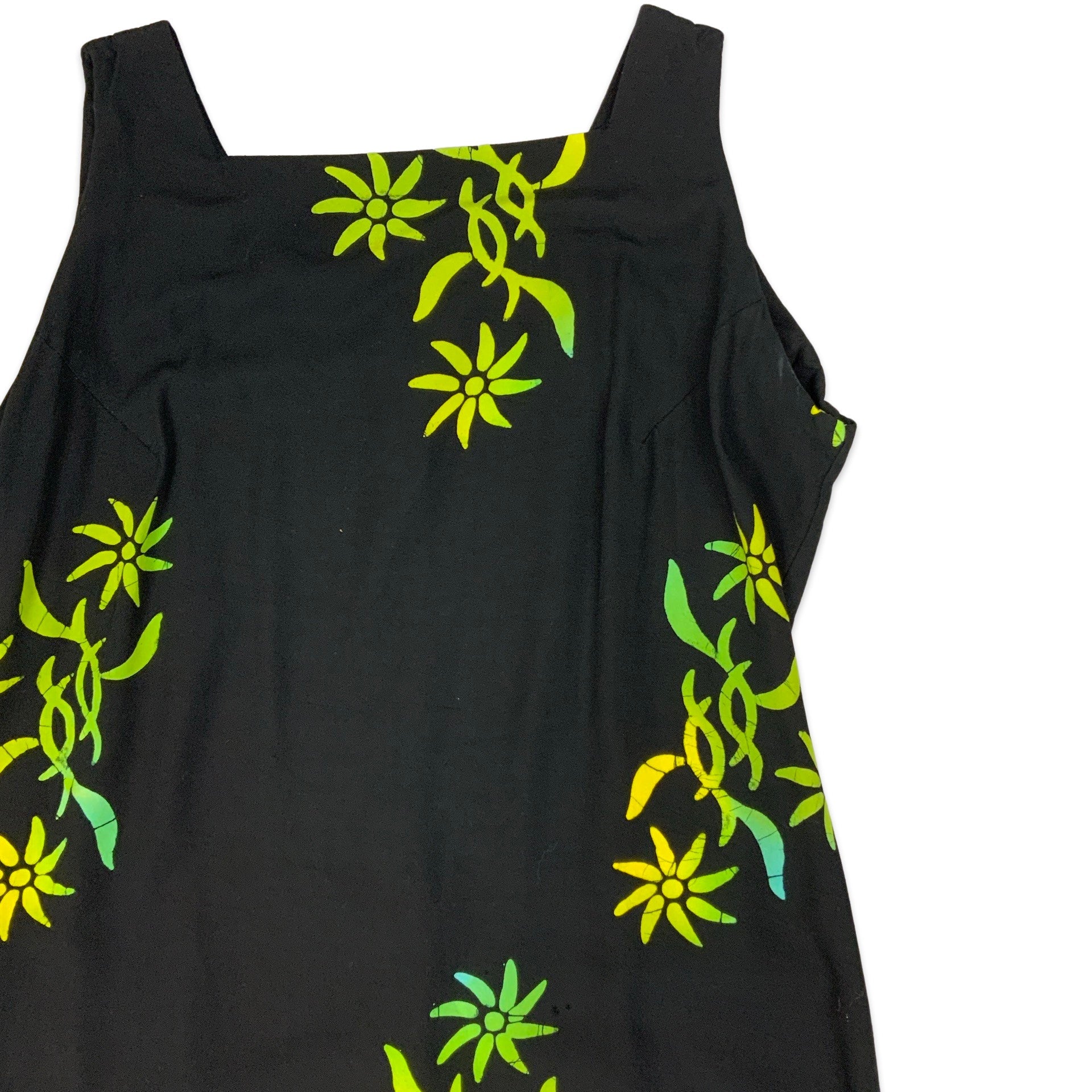 Y2K Black & Green Abstract Print Sleeveless Dress 14 16