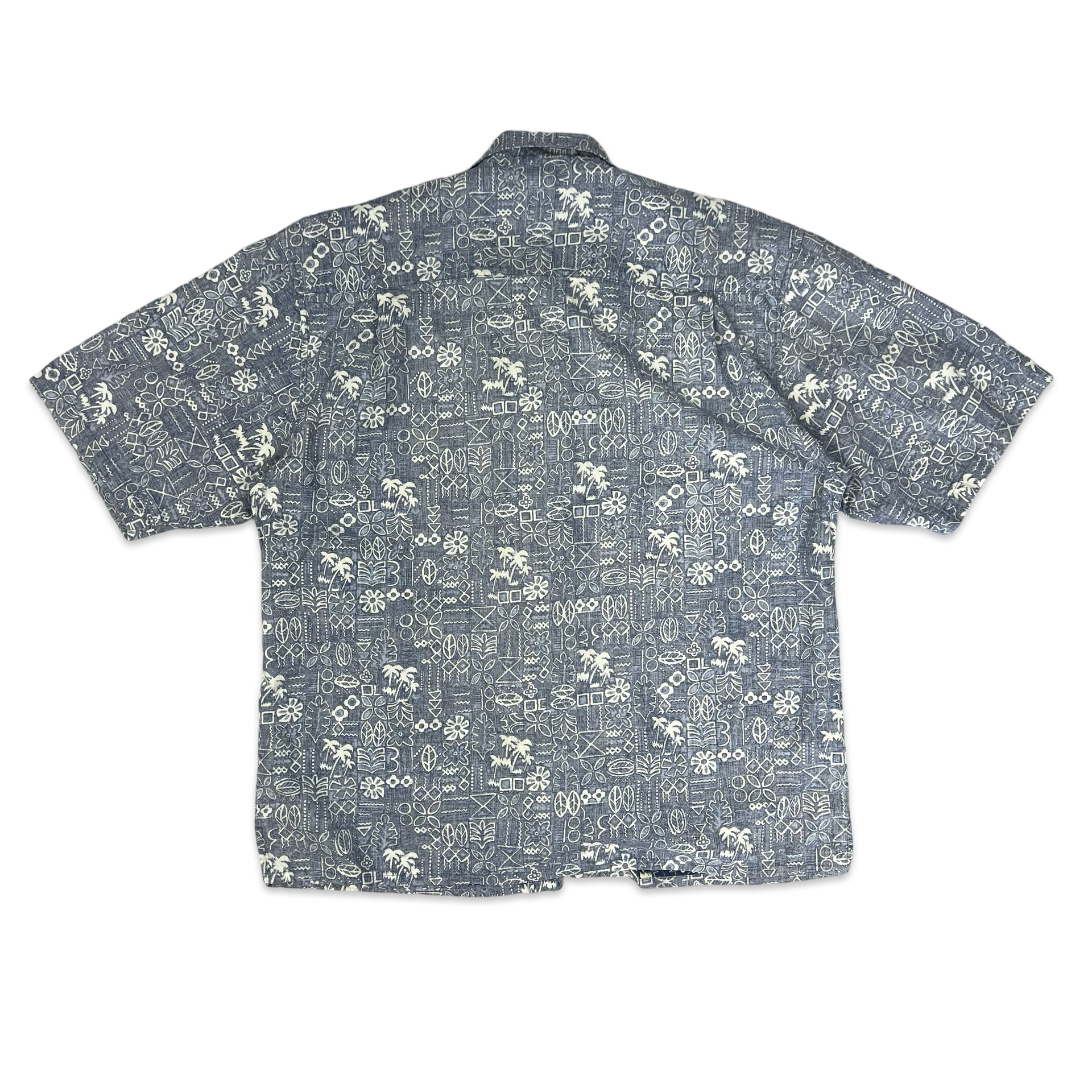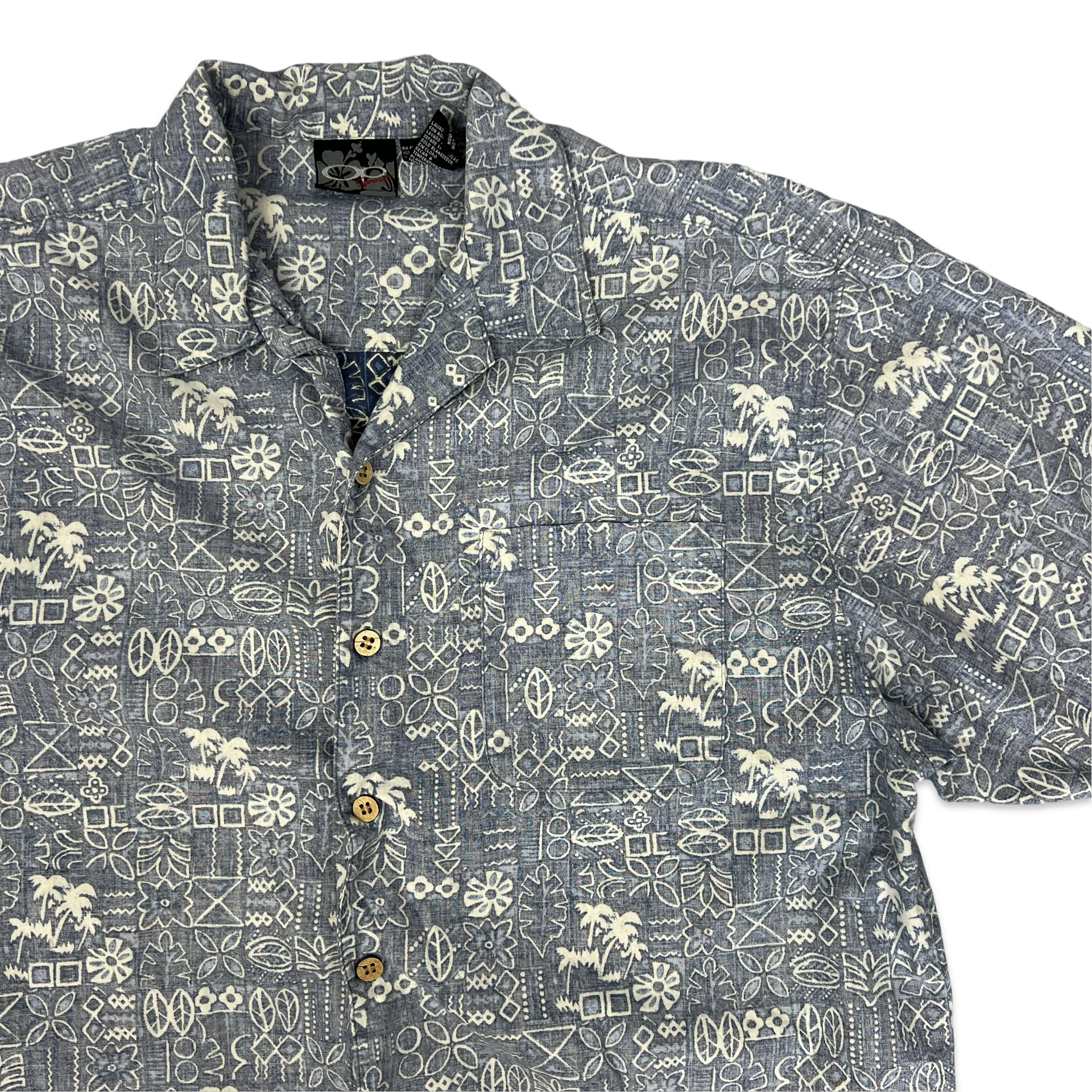 Y2K Blue Abstract Print Aloha Shirt XL