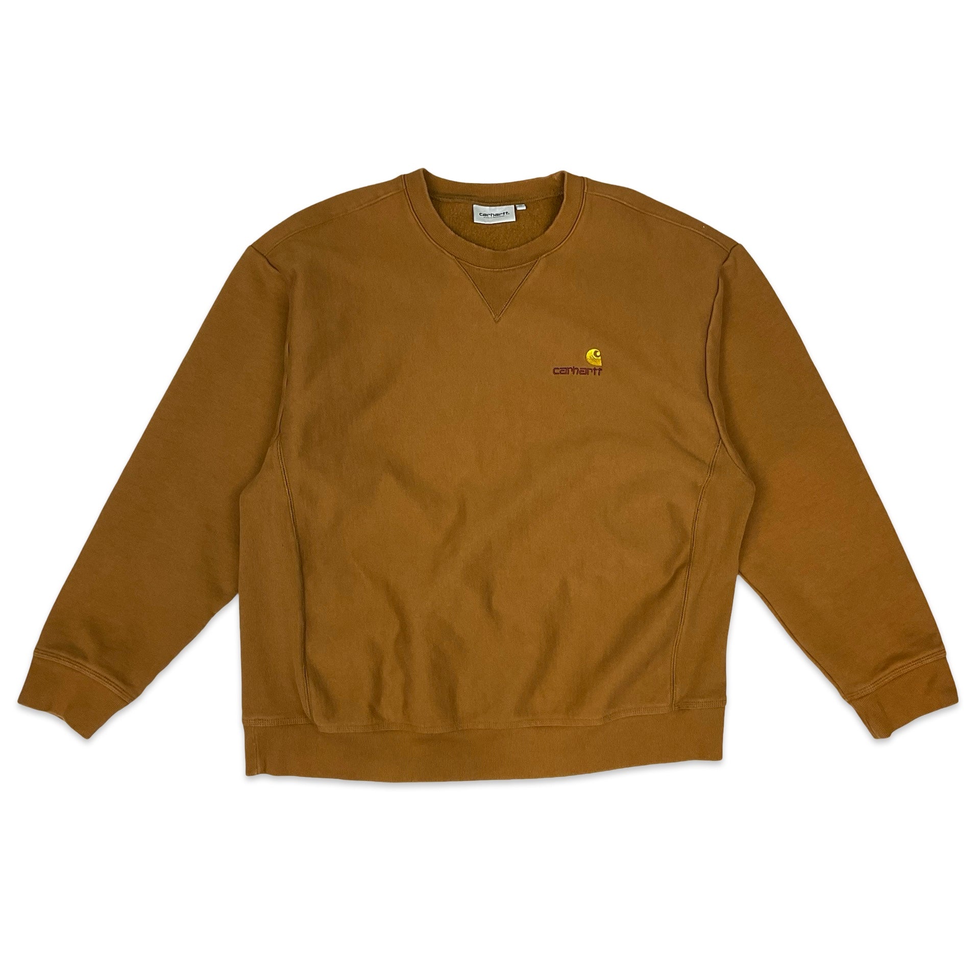 Men’s Y2K Carhartt jumper. Brown with yellow embroidered logo.