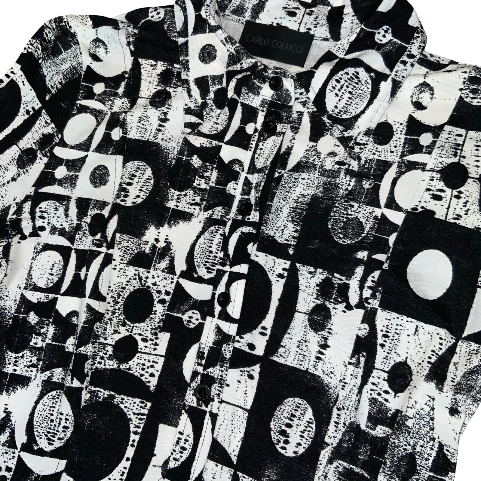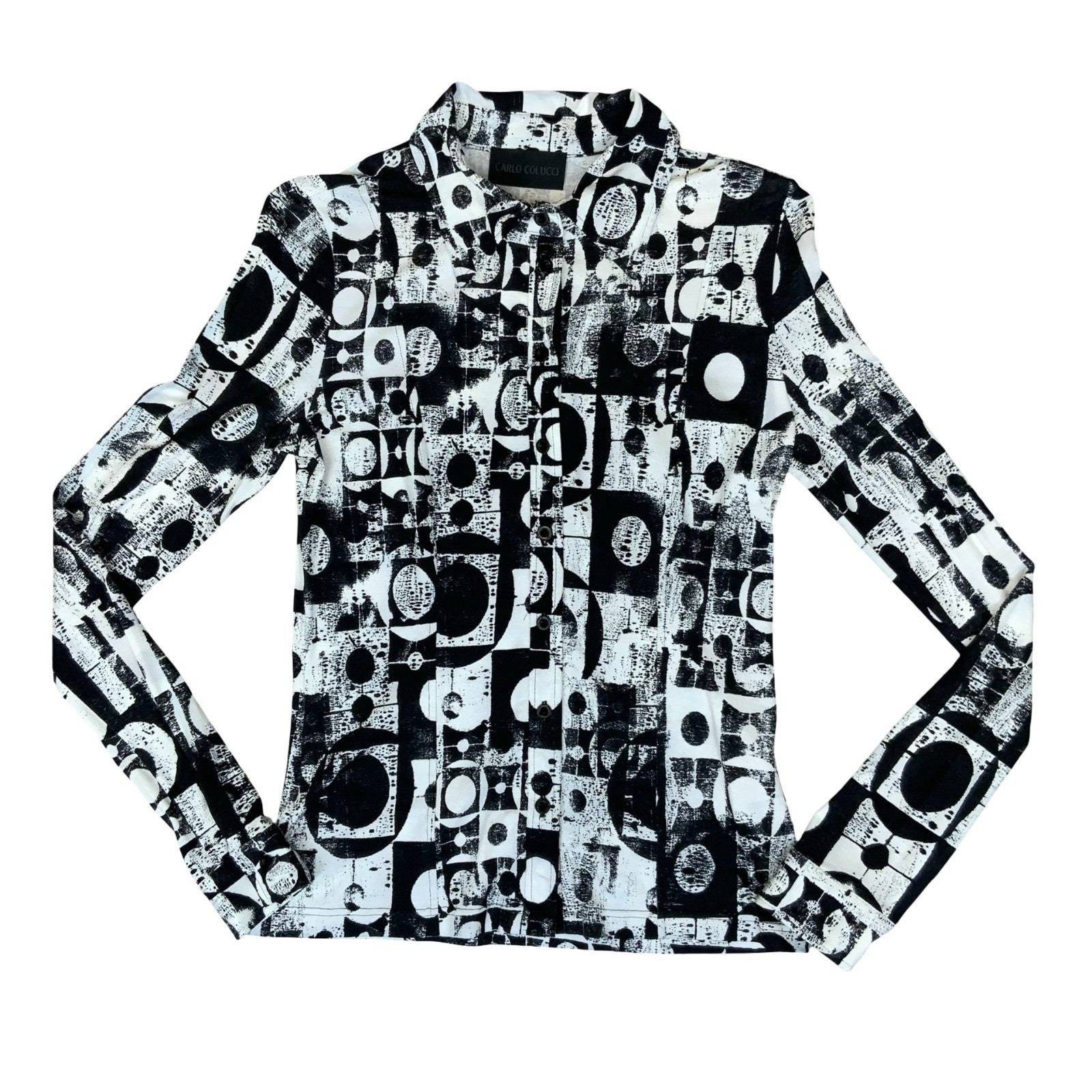 Y2K 'Carlo Colucci' Black White Geometric Avant Garde Dagger Collar Blouse UK 8