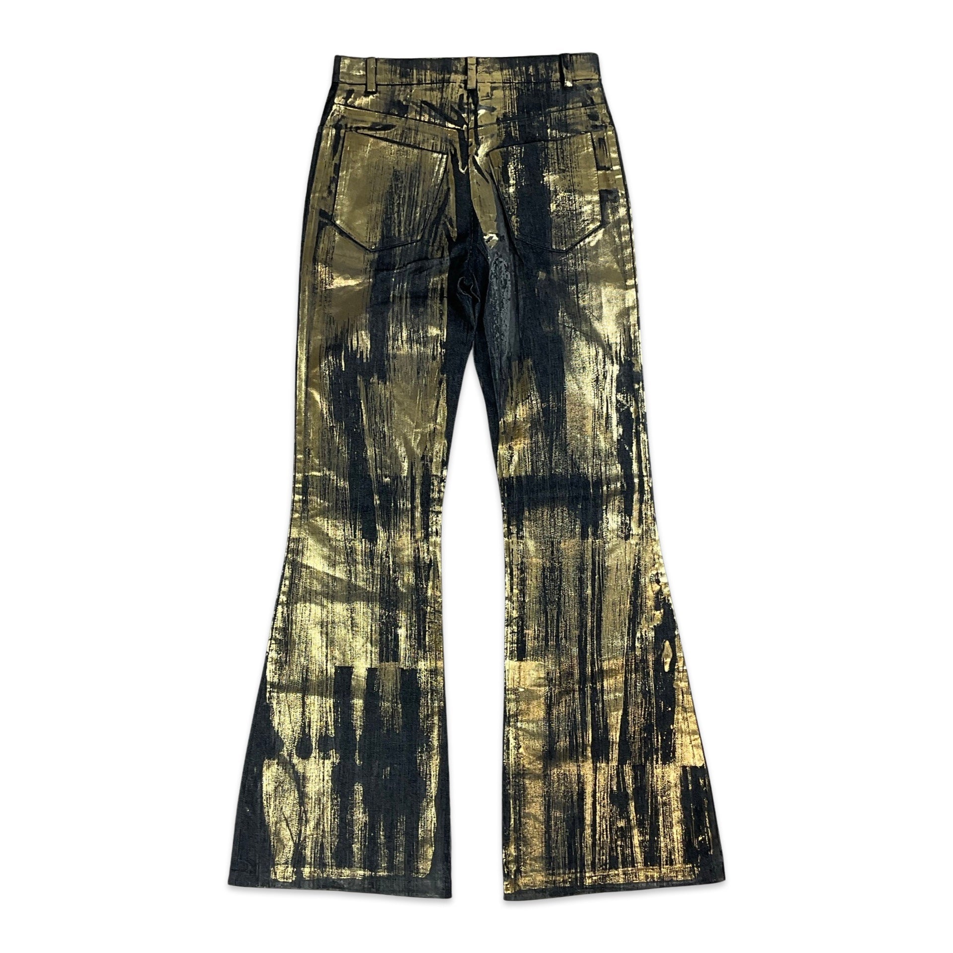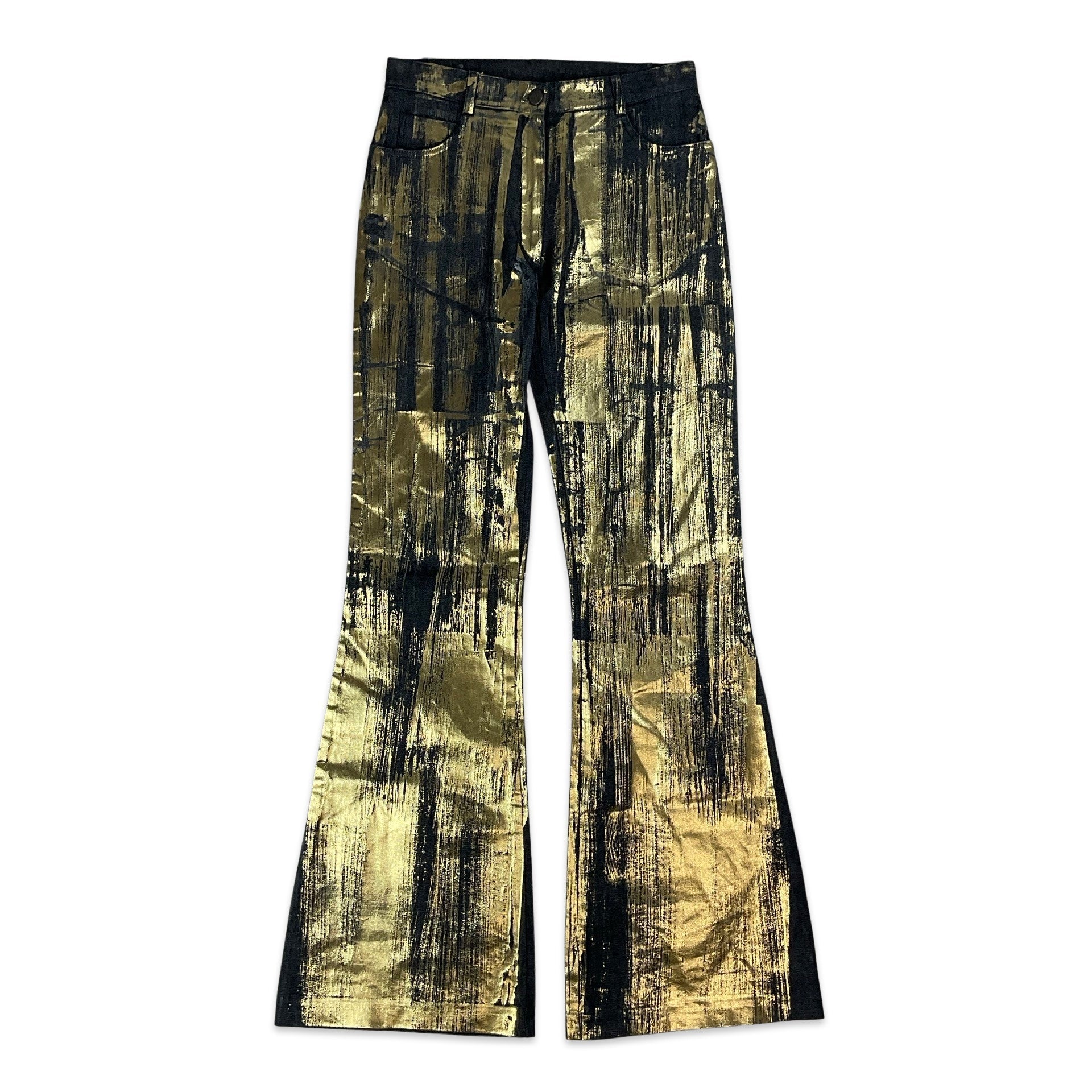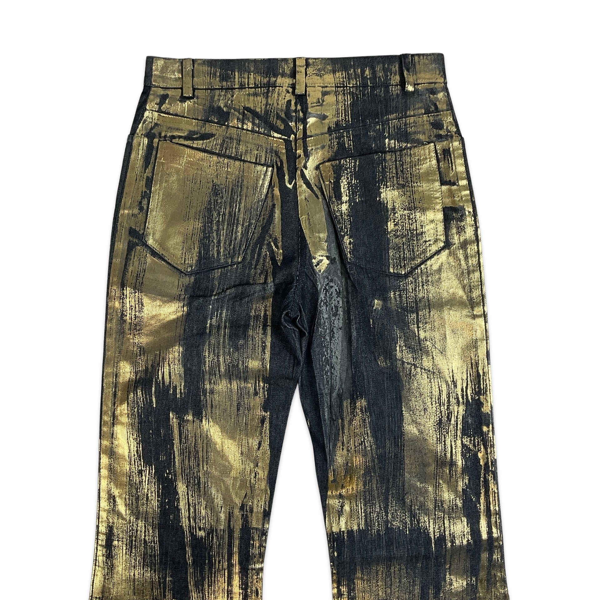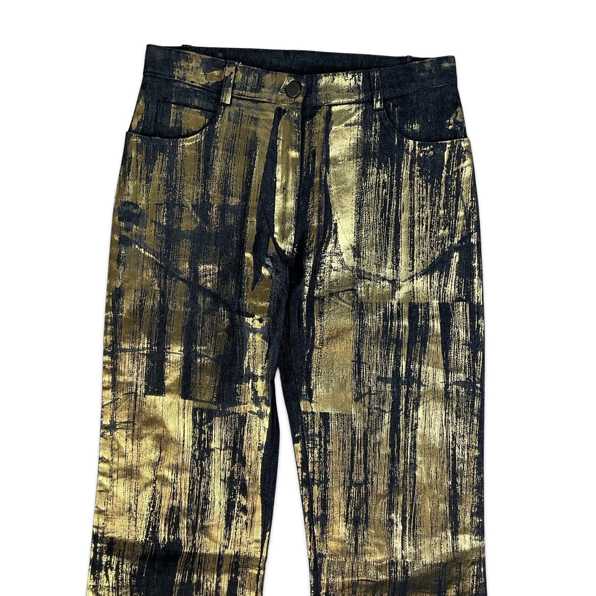 90S Y2K Dark Denim & Metallic Gold Wide Leg Jeans 6 8