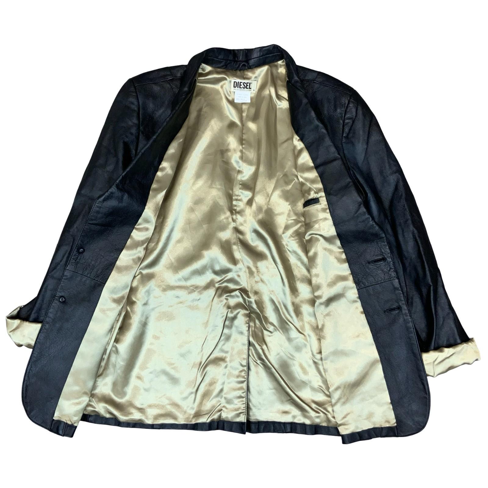 Y2K 'Diesel' Black Gold Fashion Genuine Soft Leather Blazer Jacket M/L UK 14/16
