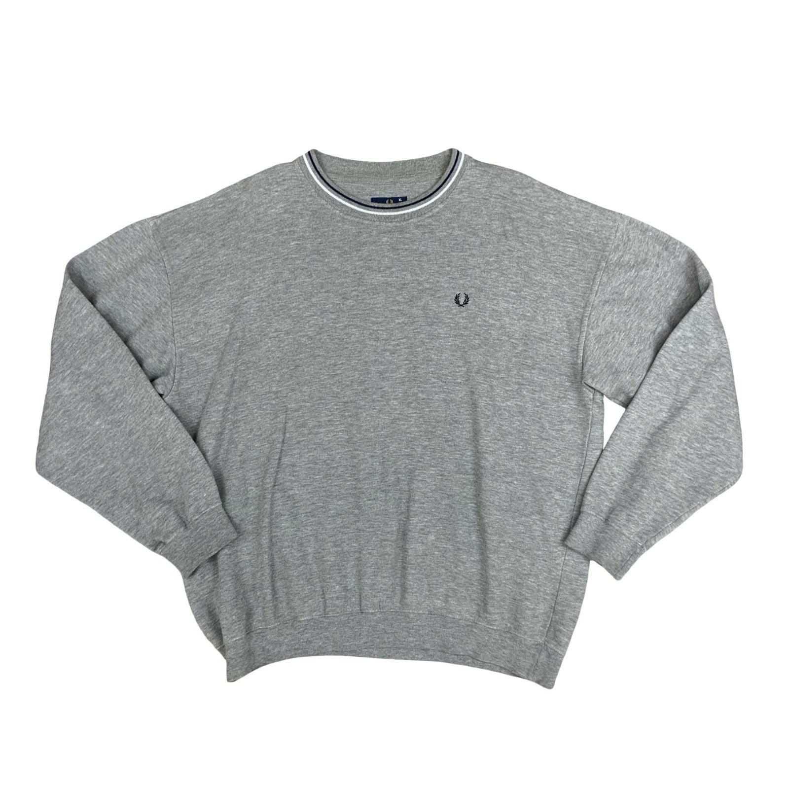 Y2K Fred Perry Grey Sweater Jumper Crewneck Pull-Over Casual Retro Extra Large