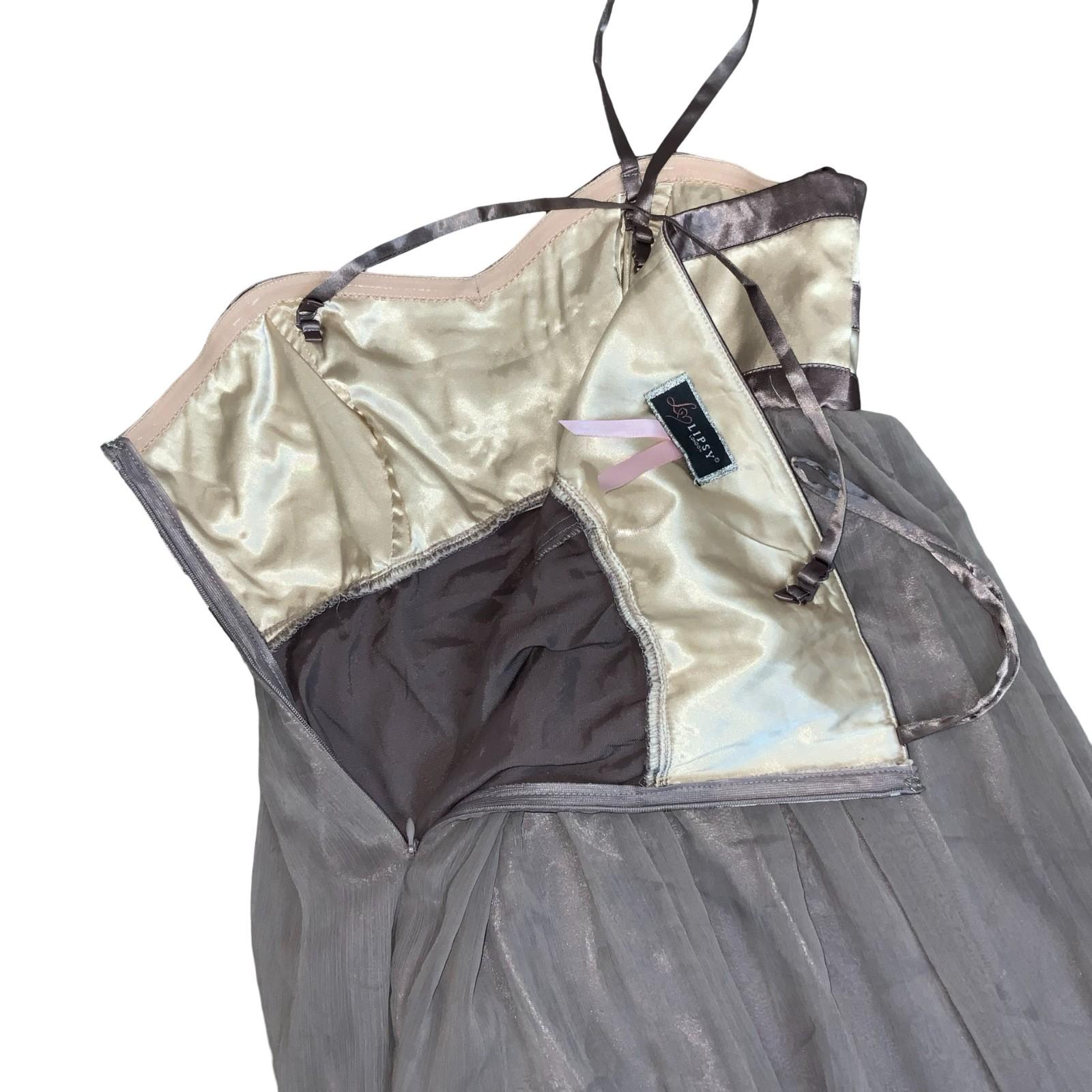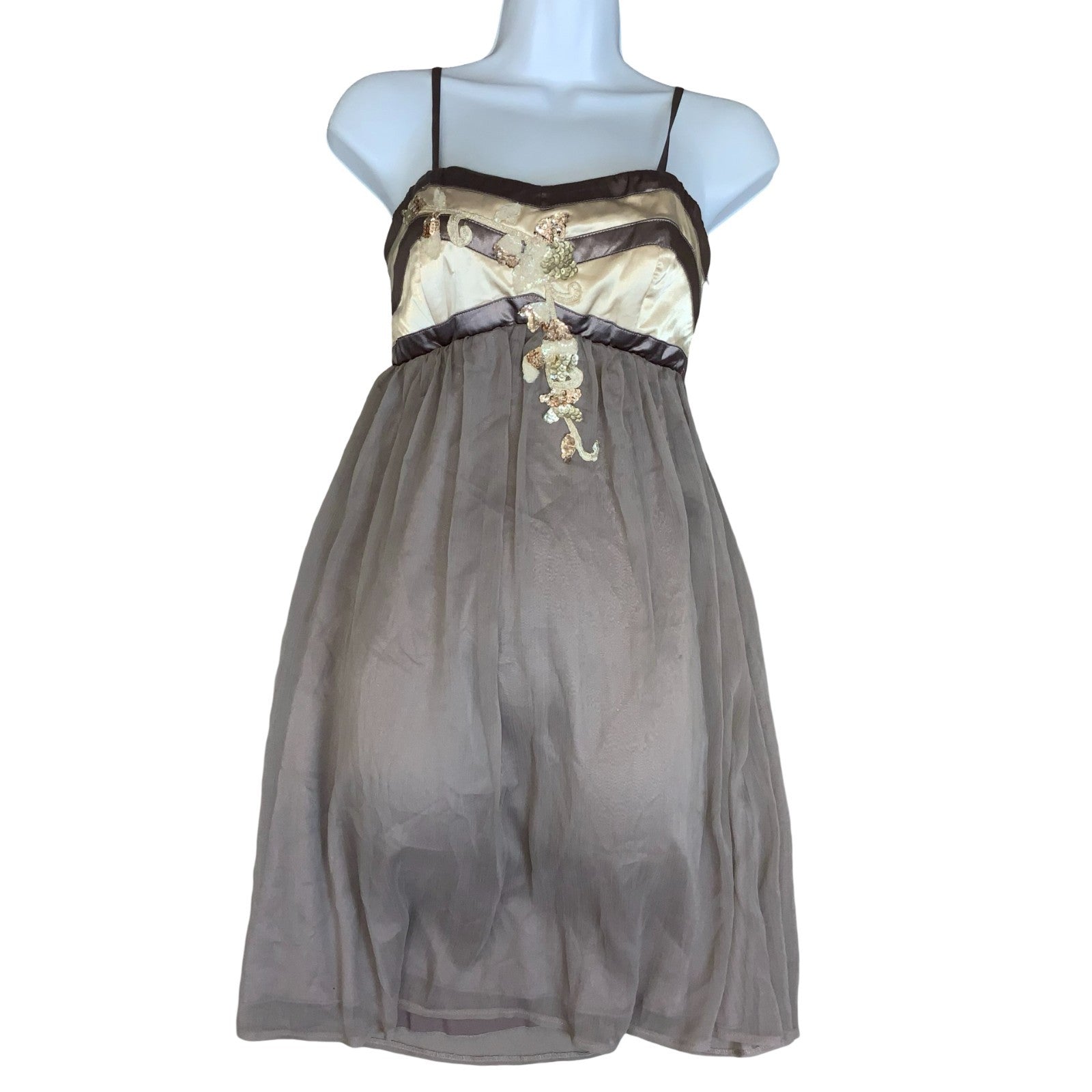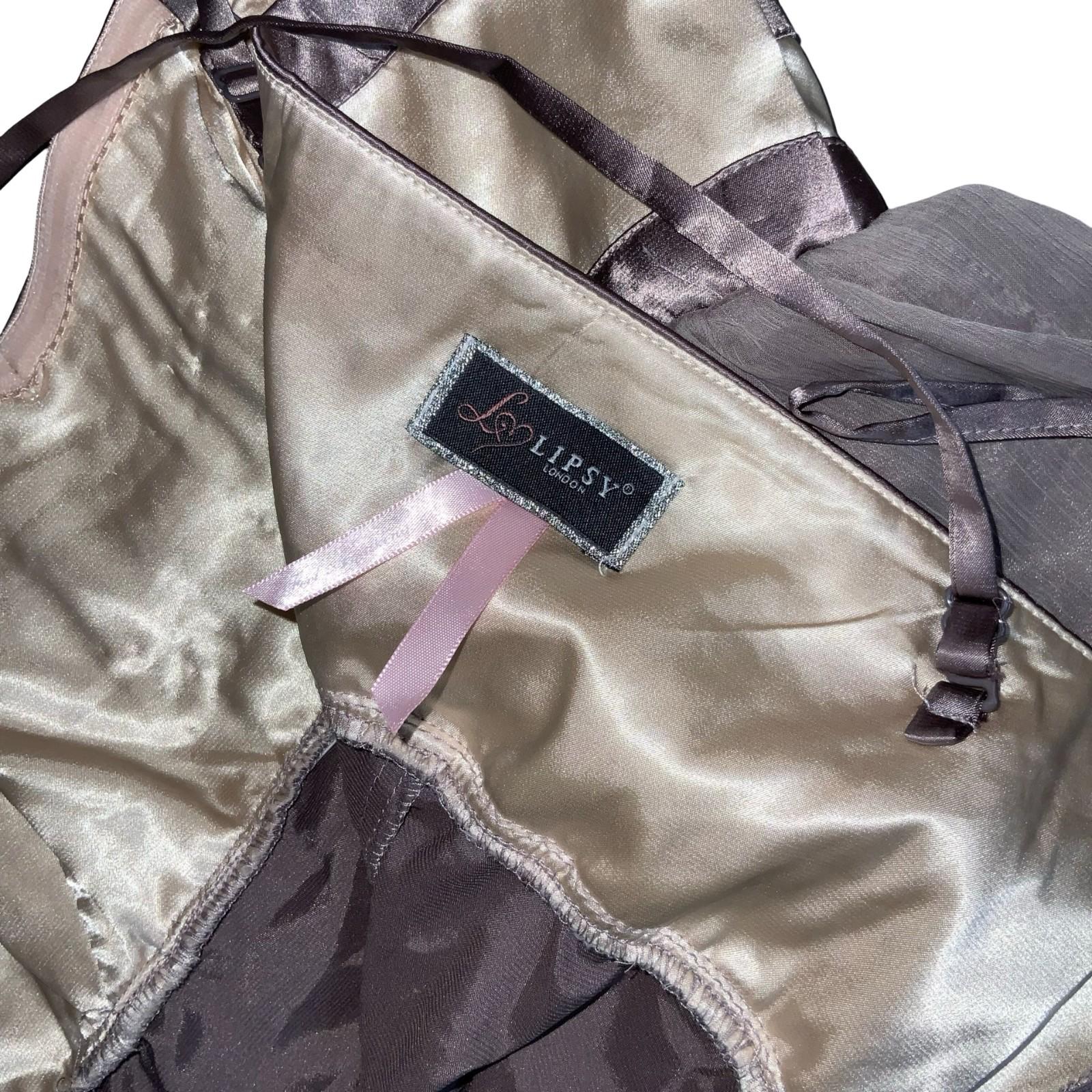 Y2K Lipsy London Grey Cream Floral Party Evening Babydoll Dress XS UK 6