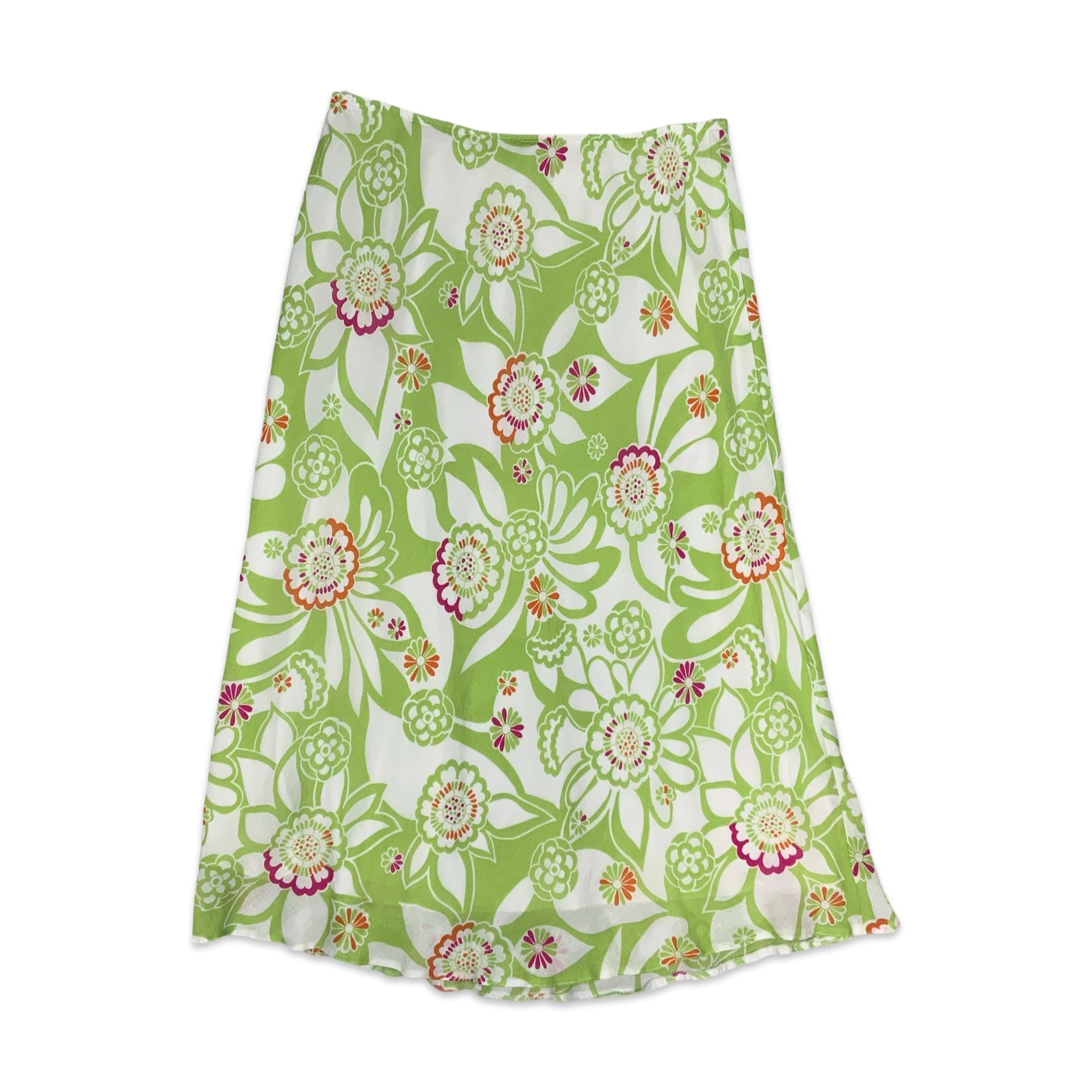 Women's 00s midi skirt. Slight aline shape with lettuce hem and elasticated waist.