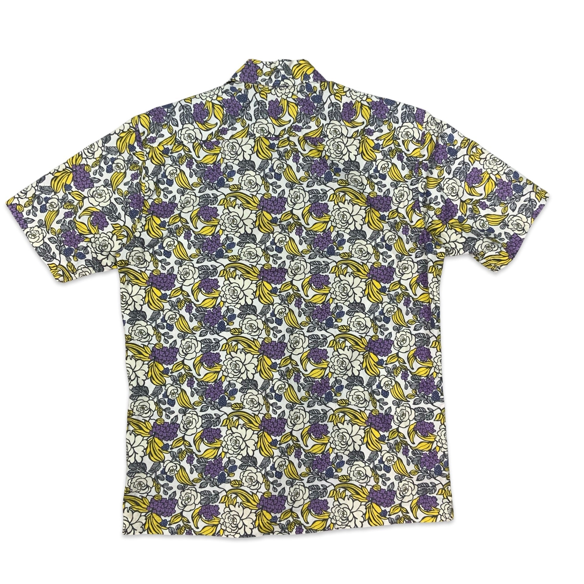 Y2K White Purple & Yellow Botanical Print Aloha Shirt M